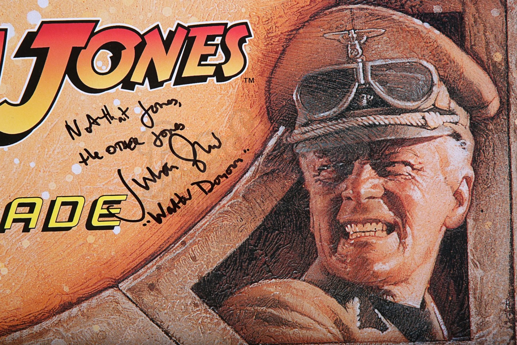 An autographed one-sheet poster from the promotion of Steven Spielberg's action-adventure sequel Indiana Jones and the Last Crusade.
