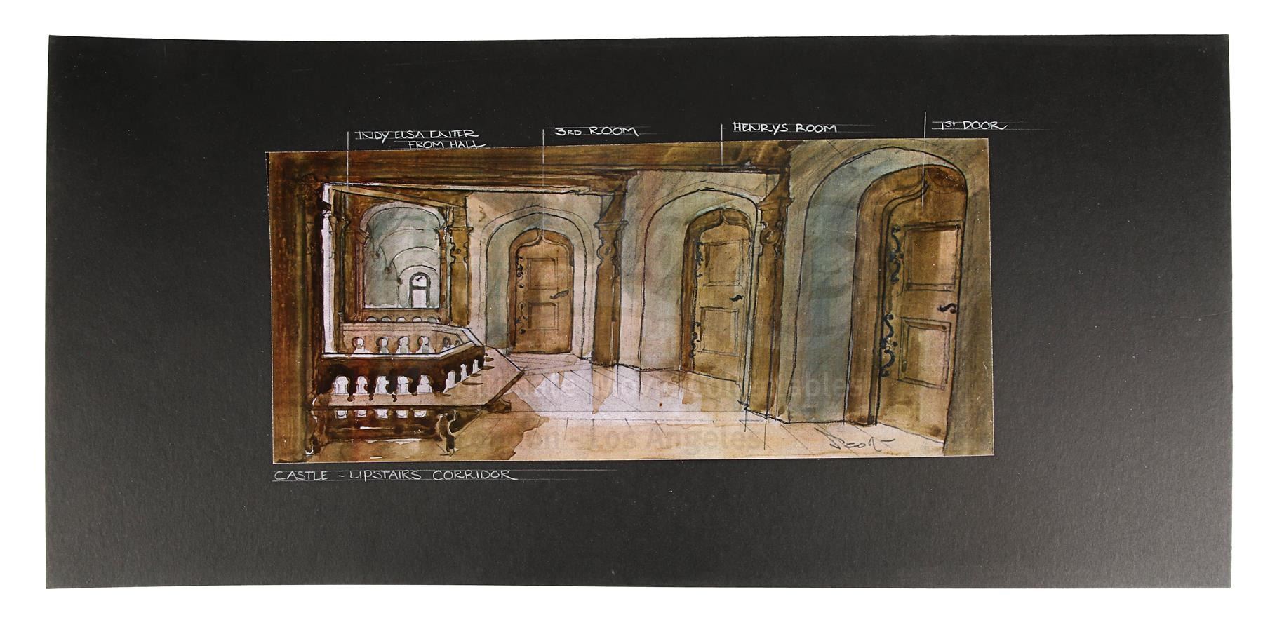 A set of production design copies by Elliott Scott from the production of Steven Spielberg's action-adventure sequel Indiana Jones and the Last Crusade. These items come from the personal collection of legendary producer Robert Watts. The lot consists of six printed colour copies, which would have been used by the film's production departments.