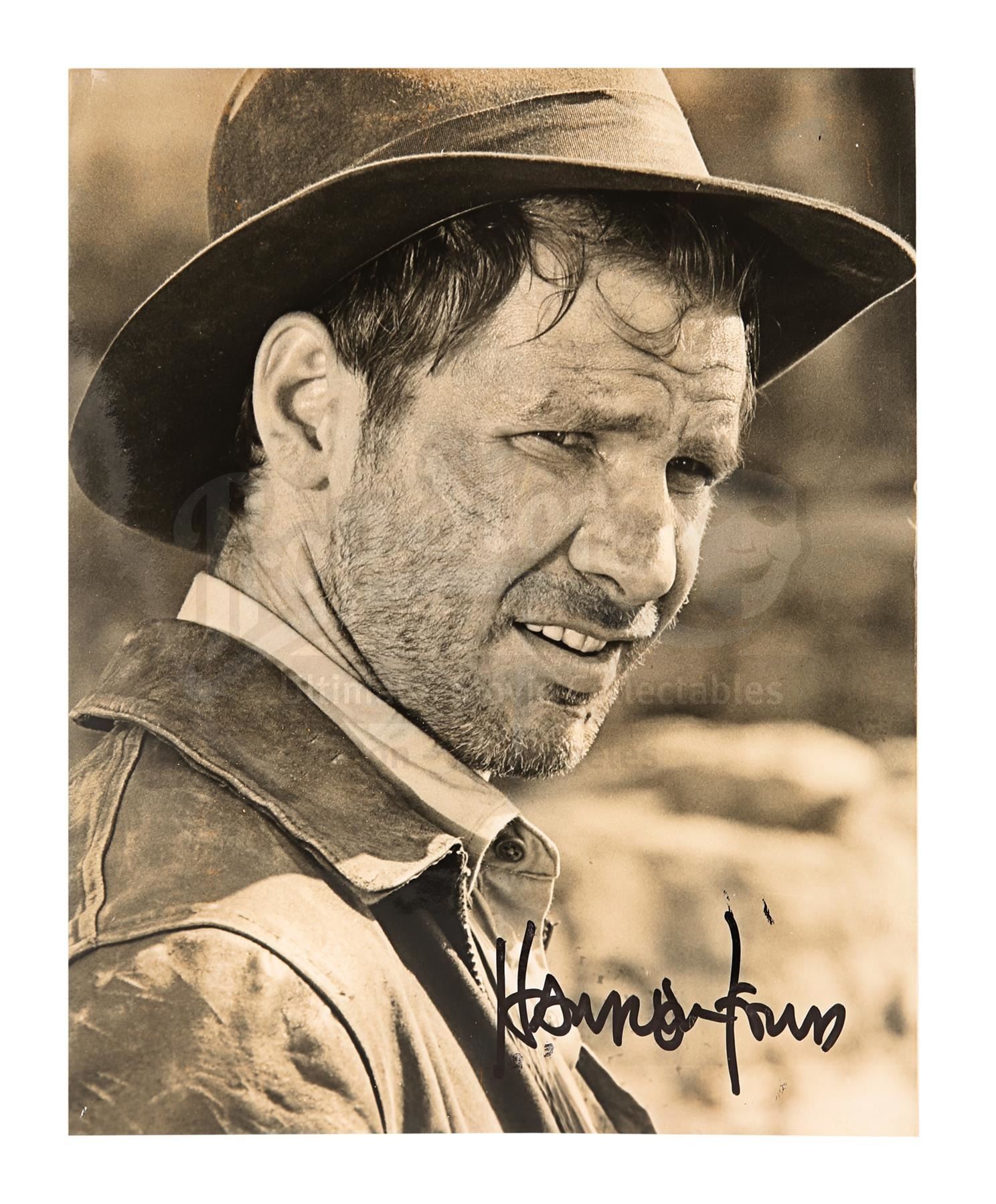 A Harrison Ford autographed photo from the promotion of Steven Spielberg's action-adventure sequel Indiana Jones and the Temple of Doom. This item comes from the personal collection of legendary producer Robert Watts.