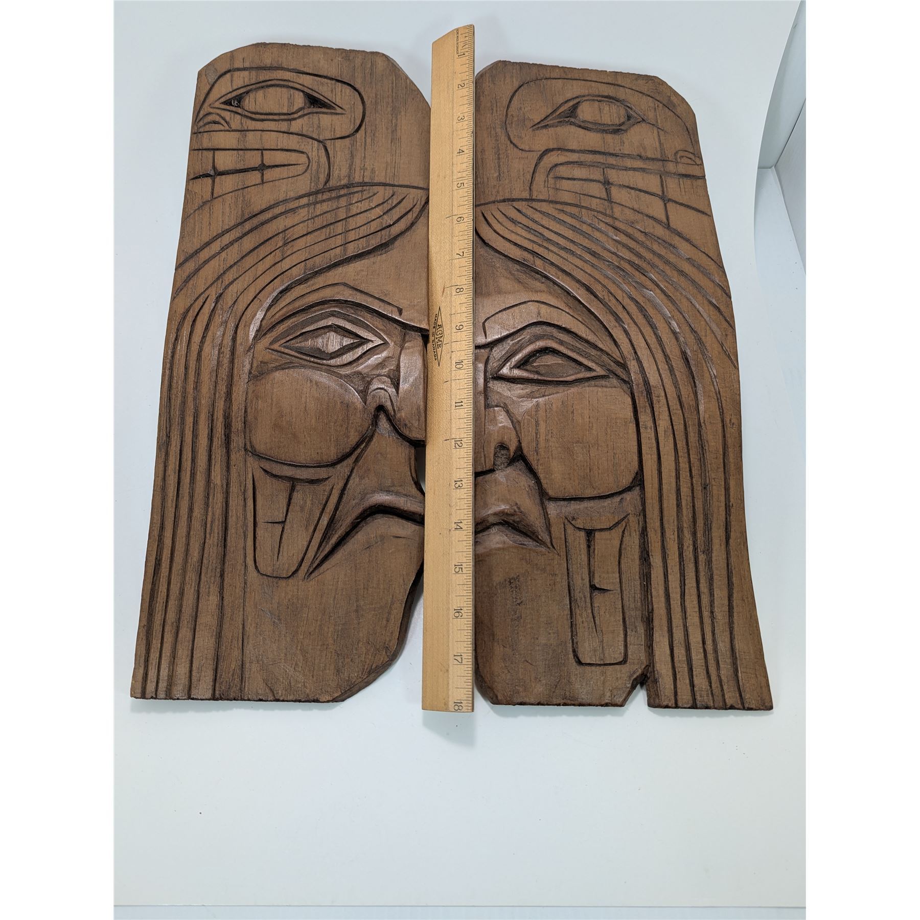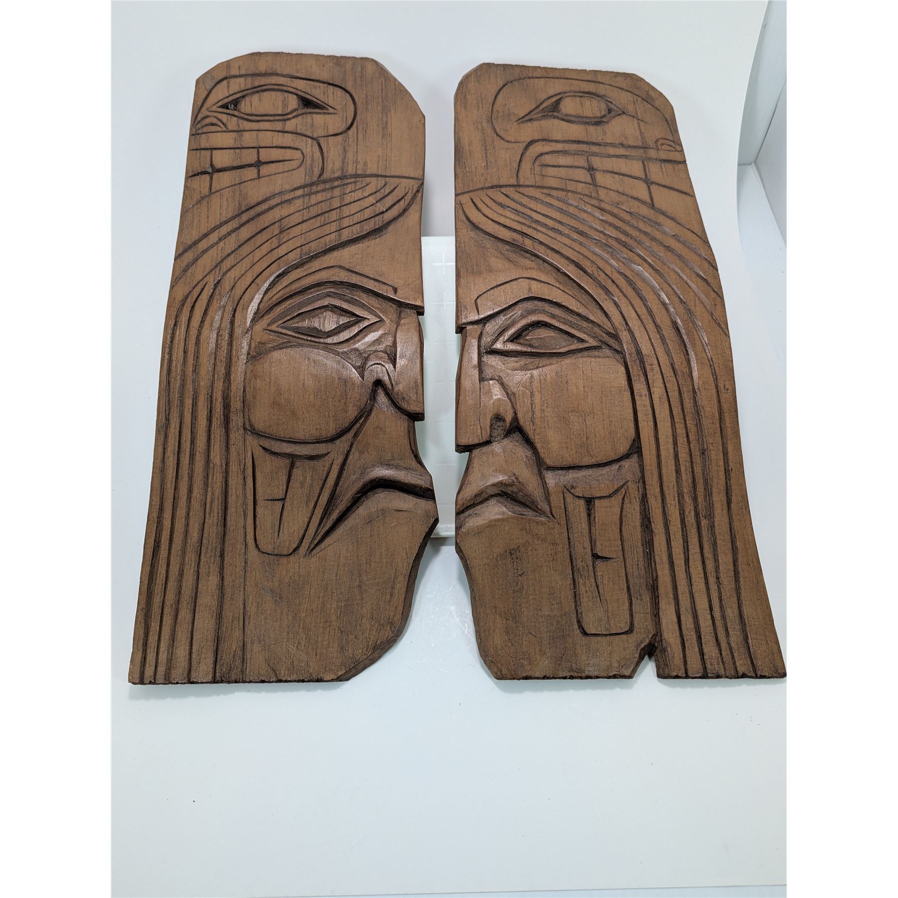 PLEASE NOTE, YOU ARE BIDDING ON TWO INDIGENOUS FACE CARVINGS. YOUR PRICE TIMES TWO. THESE CARVINGS BY ANTHONY OF MOUNT CURRY BC