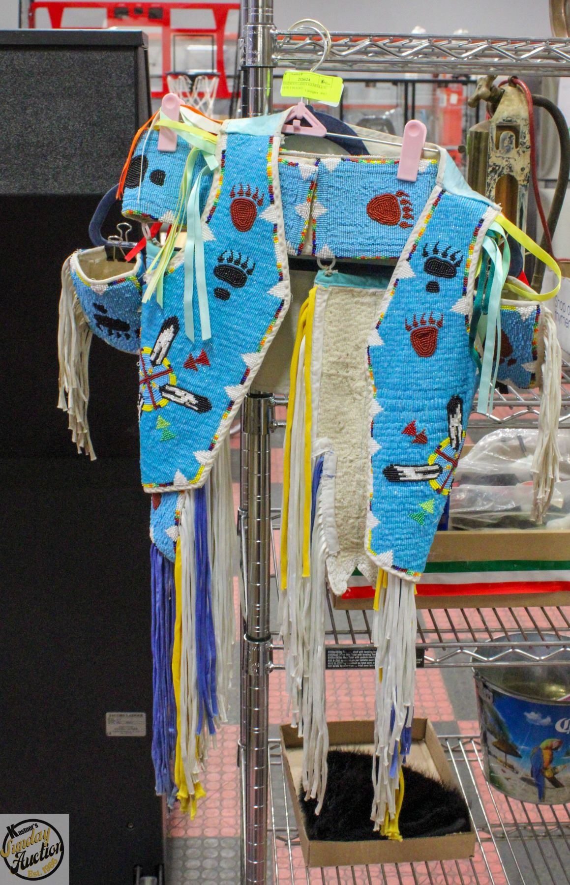 LEATHER POW WOW OUTFIT **ALL ITEMS MUST BE REMOVED BY 5PM SATURDAY, NOVEMBER 8th 2025. ALL REMAINING ITEMS WILL BE SUBJECT TO A $6.00 PER DAY STORAGE CHARGE. ANY ITEMS REMAINING AFTER MONDAY, NOVEMBER 24TH 2025 WILL BE CONSIDERED FORFEITED. NO REFUNDS WILL BE ISSUED FOR FORFEITED ITEMS. TO SCHEDULE A PICK UP APPOINTMENT CLICK HERE