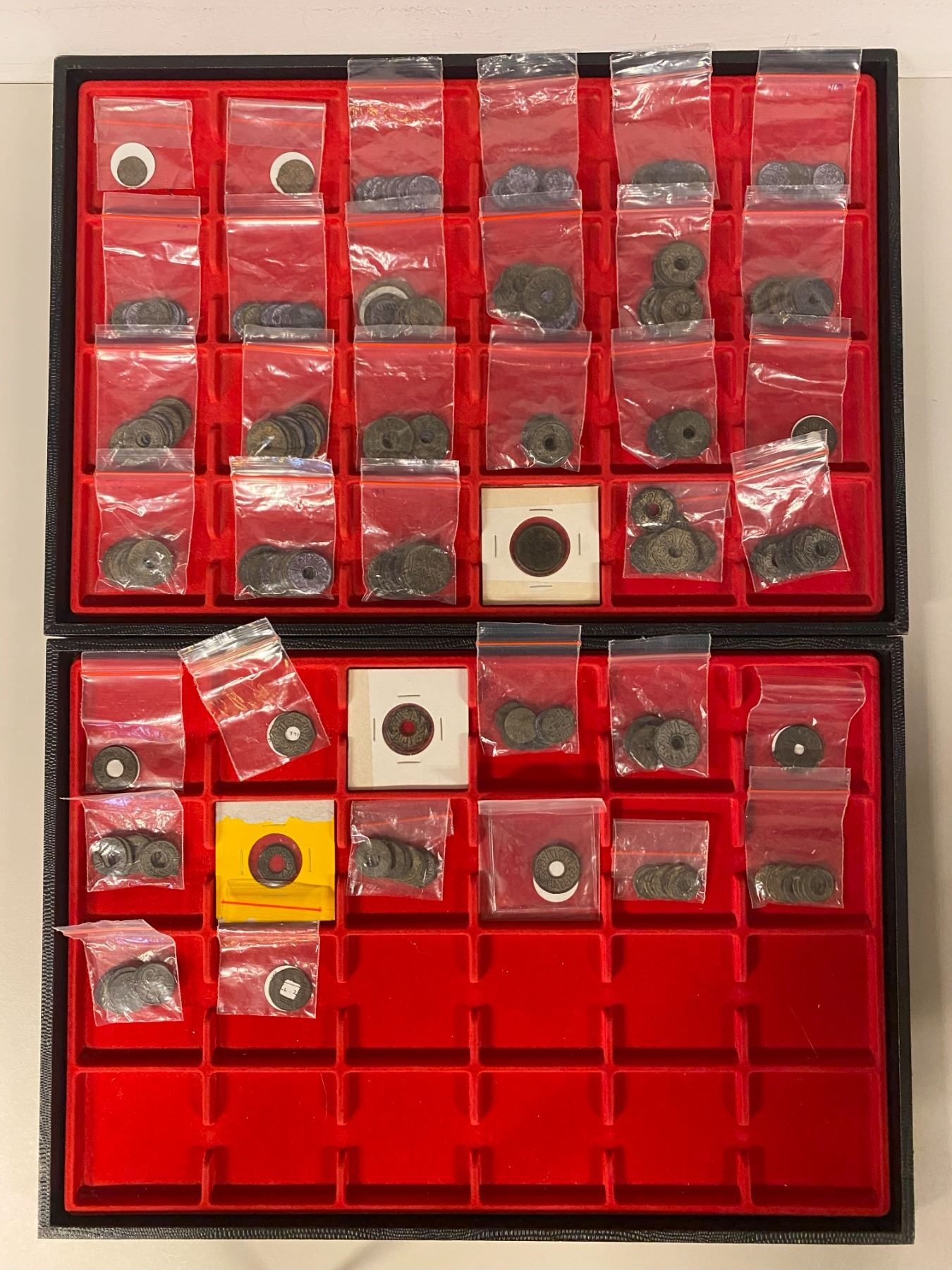 PALEMBANG: LOT of about 275 tin pitis, various types, many dated, including about 67 dated Ah1193, about 100 dated AH1203, about 22 the octagonal type dated AH1219, about 13 from the British Occupation, and about 73 various other types; most in VF conditions, some better, a few attributed with Millies numbers; retail value $400, lot of about 275 pieces, ex Jürgen M. Wilmes Collection.
