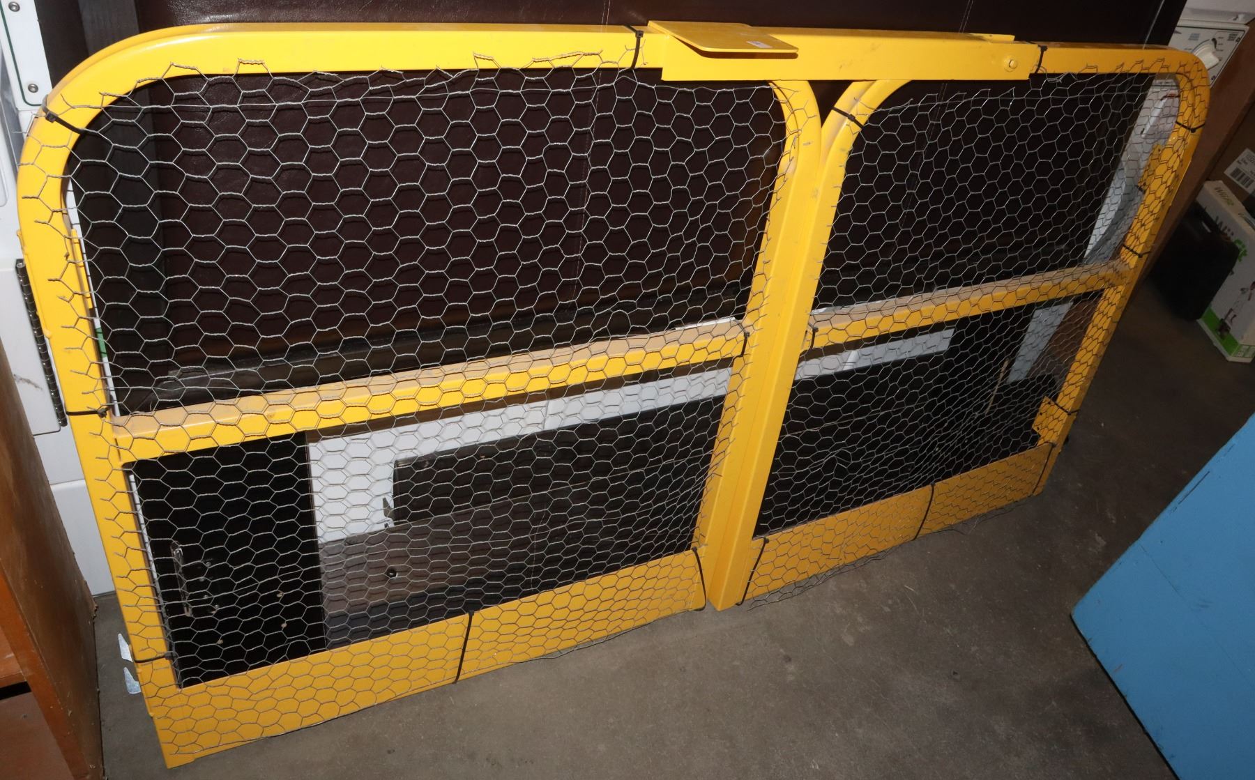 TOTAL WIDTH APPROX 6', HEIGHT APPROX 41". HAS HAD CHICKEN WIRE ZIP TIED ON , EASY REMOVAL IF DESIRED.