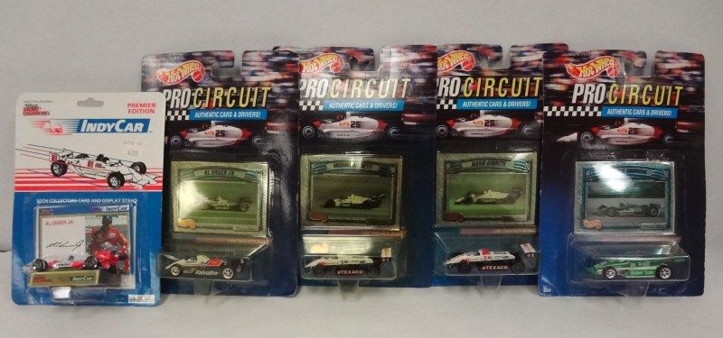 INDY CAR LOT OF 5: HOT WHEELS PRO CIRCUIT 2-ANDRETTI, UNSER, GUERRERO &