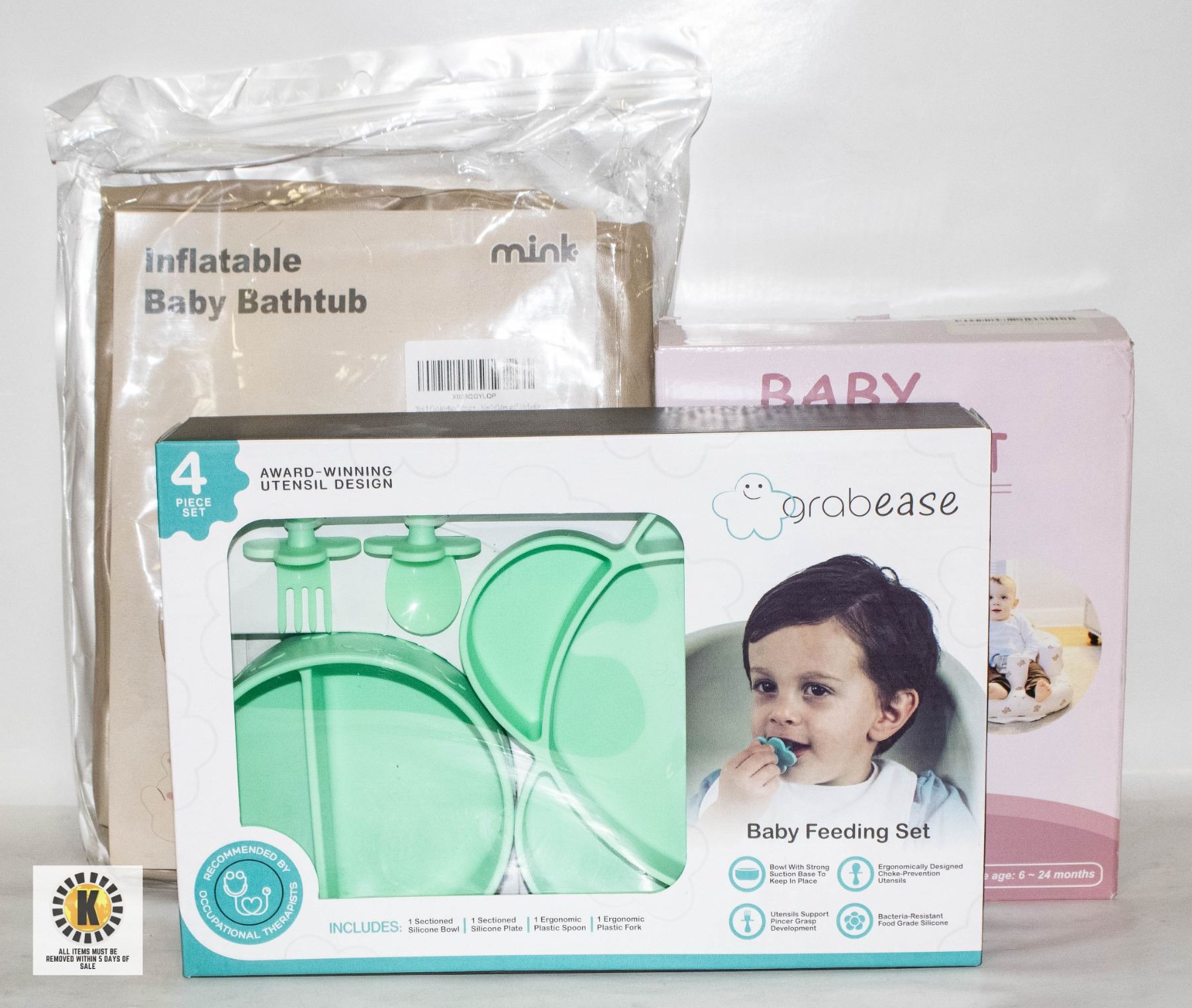 INFLATABLE BABY BATHTUB, BABY SEAT, BABY DISH SET