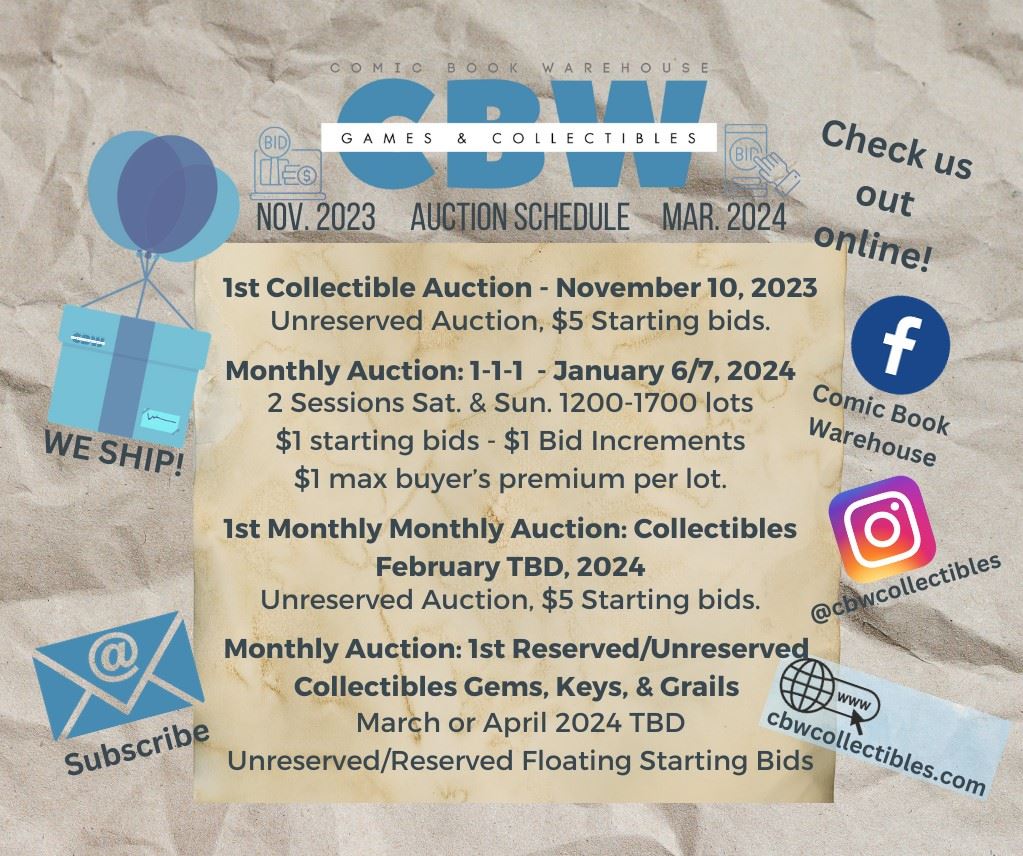 CBW Collectibles assumes no responsibility for any liability once a bid is accepted.
