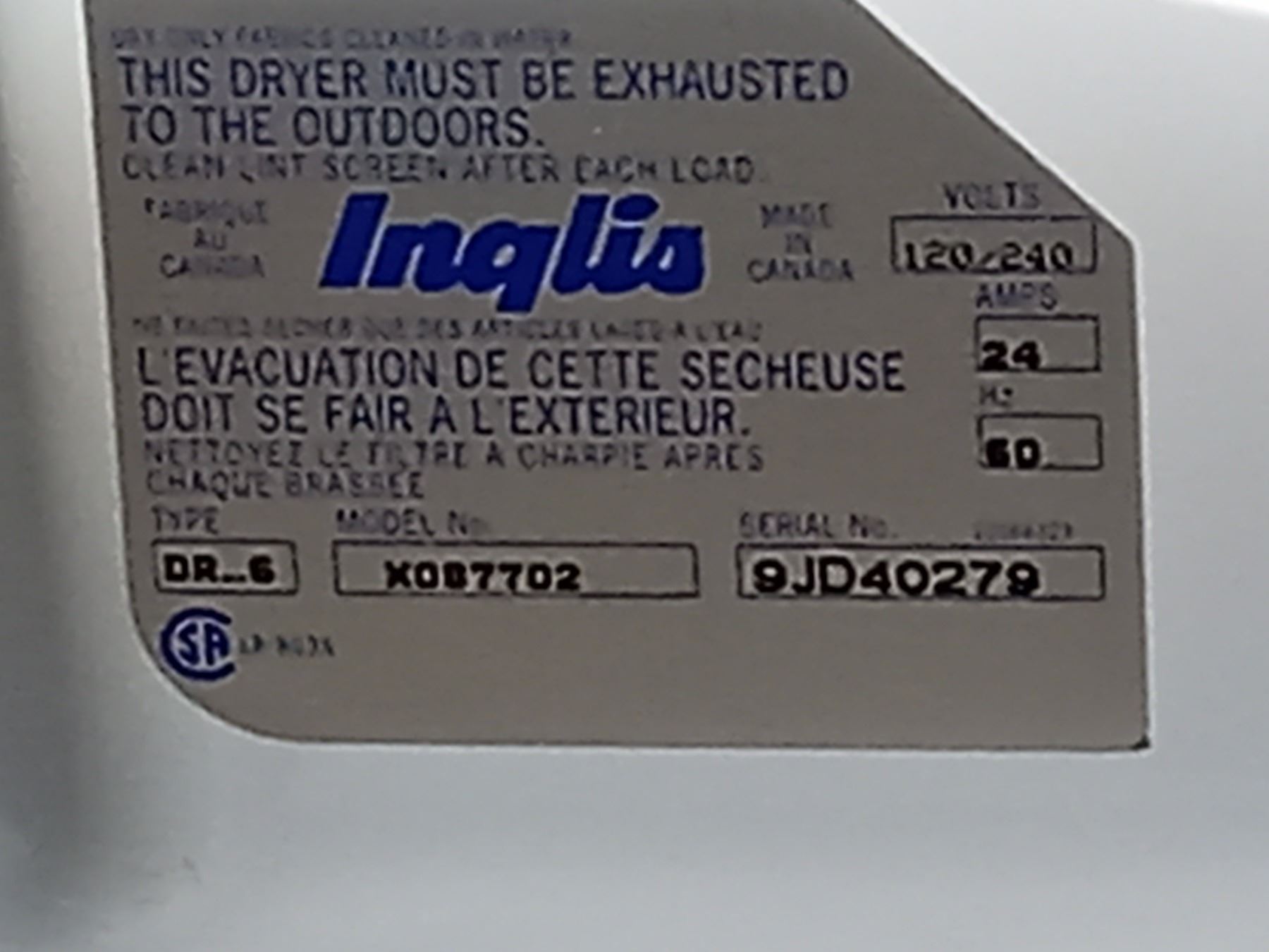 INGLIS HD SUPER CAPACIT 3 CYCLE DRYER INCLUDES VENT HSE