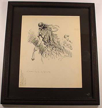INK DRAWING OF A WARRIOR - SIGNED - FRAMED - Approx. 12" x 14"