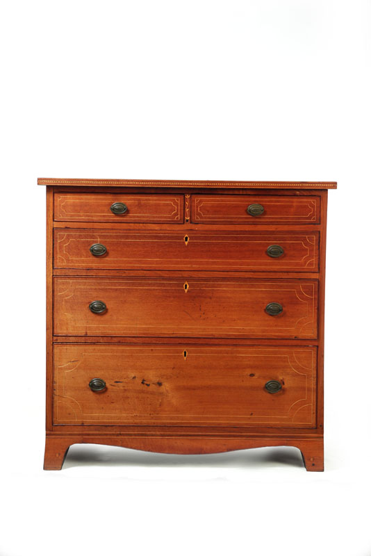 INLAID HEPPLEWHITE CHEST OF DRAWERS.