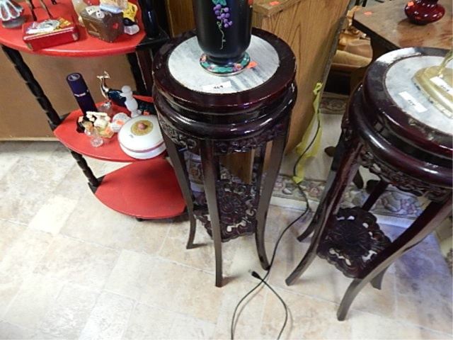 INLAID MARBLE TOP MAHOGANY ROUND PLANT STAND