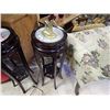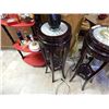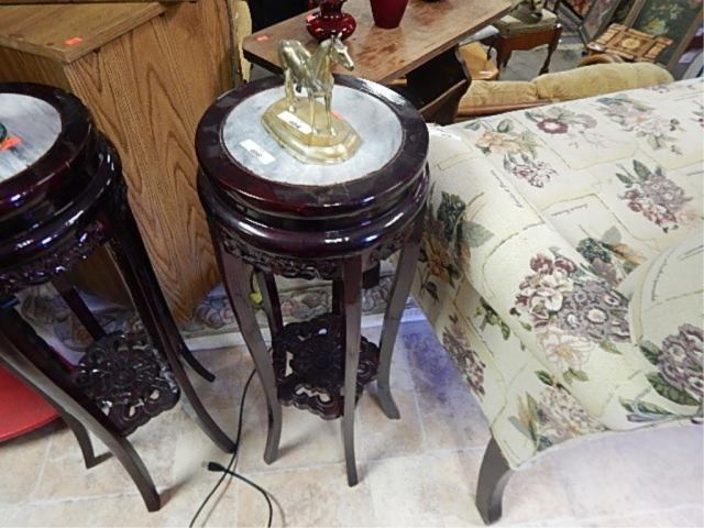 INLAID MARBLE TOP MAHOGANY ROUND PLANT STAND