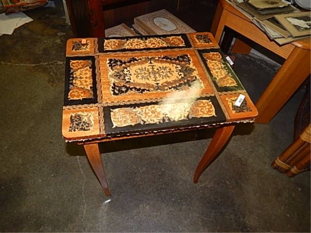 INLAID SIDE TABLE WITH LID - NEEDS HING REFASTENED
