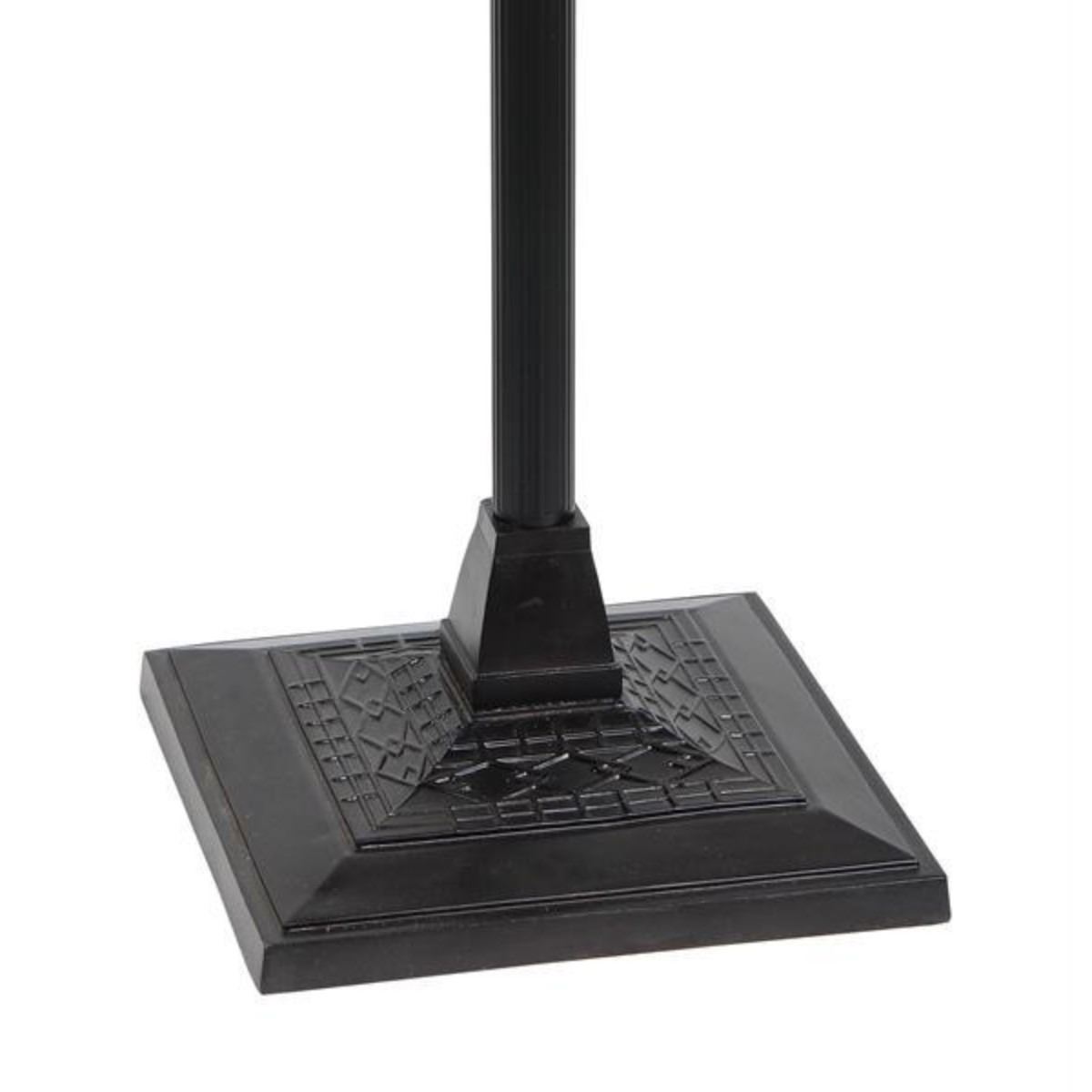 INNES, Tiffany-style mission torchiere is handcrafted with intricate designs and made of pure stained glass piece. Â Distinctive design featuring rows and columns. Â Each piece accentuated one another to create a wonderful pallet of warmth. Â Coated in an antique bronze patina tone. Â Details abound from the base to the top anchor. Â Expertly crafted with top quality materials. Â Great addition to any office or home. Est. Glass BeadsN/A Est. Glass Cuts272.00 Overall Width14.20 Overall Height70.30 Shade MaterialsTiffany-glass Est. Marble BeadsN/A Specific UsesIndoor Light DirectionDownlight Power SourceCorded, Electric Consumer NoticeProposition 65 Shade Height6.60 Shade Width14.20 Base Width10.30 Base Height62.60 Electric Wire Length74.00 Threaded Pipe/Finial Length N/A Net Weight (lbs)14.80 Certification UL Listed Est. Glass crystals N/A Light Bulb Types(1) 100 Watt max E26 Type A Bulb (not included) Overall MaterialsGlass, resin, metal & electrical components Shade ShapeRound Overall Diagonal19.90 Glass Thickness0.12 Switch TypeKnob on/off FinishBlackish Bronze