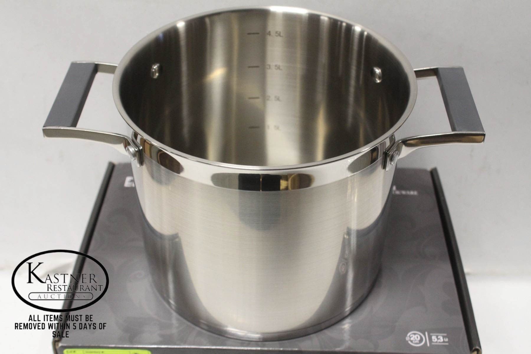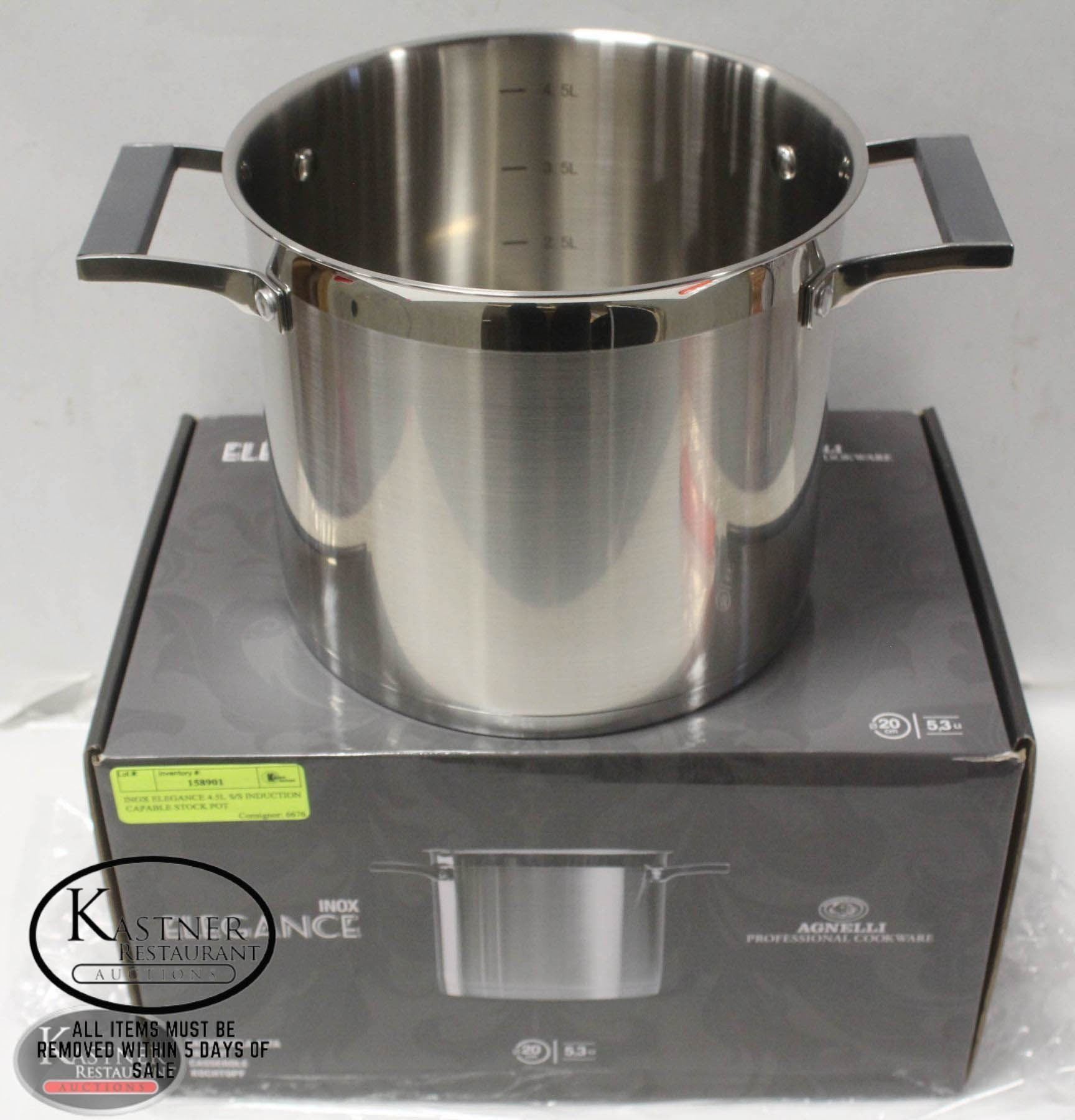 *NEW STAINLESS STEEL AGNELLI PROFESSIONAL COOKWARE. RIVETED HANDLES W/ ANTI-SLIP SILICON INSERT. FOUR MEASURE LINES. SUITABLE FOR ALL COOKING PLATES, INDUCTION INCLUDED. NEW IN-BOX, POT ONLY(NO LID) **ALL ITEMS MUST BE REMOVED BY 5PM MONDAY, SEPTEMBER 12TH, 2022. ALL REMAINING ITEMS WILL BE SUBJECT TO A $6.00 PER DAY STORAGE CHARGE. ANY ITEMS REMAINING AFTER MONDAY, SEPTEMBER 26TH, 2022 WILL BE CONSIDERED FORFEITED. NO REFUNDS WILL BE ISSUED FOR FORFEITED ITEMS.** TO SCHEDULE A PICK UP APPOINTMENT CLICK HERE