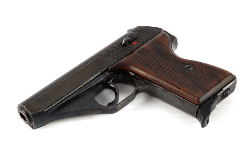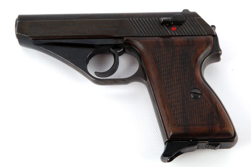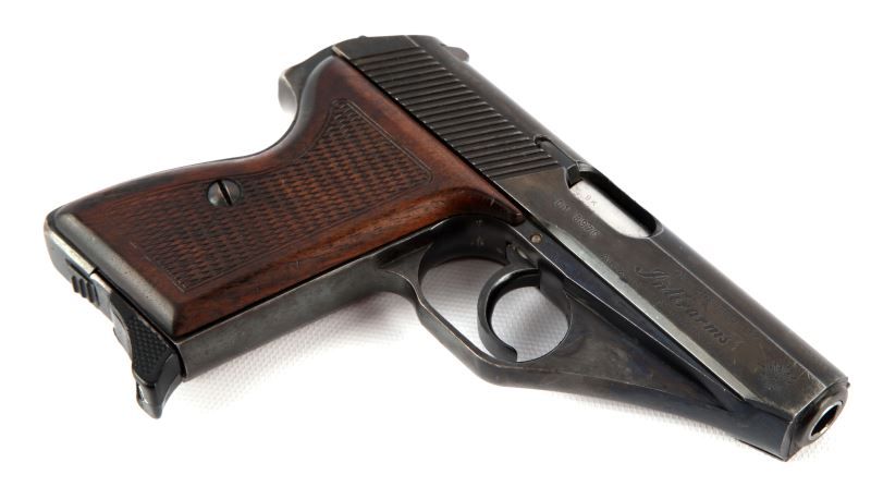 Mauser Model HSC .380 ACP pistol, imported by Interarms. Bore is bright and clean, finish is about 75%, with thinning on slide, and some pitting on left side of slide. Grips show some handling wear and patina, but otherwise very good. Overall good condition, with original box and literature. Caliber: .380 ACP Serial #: 018970