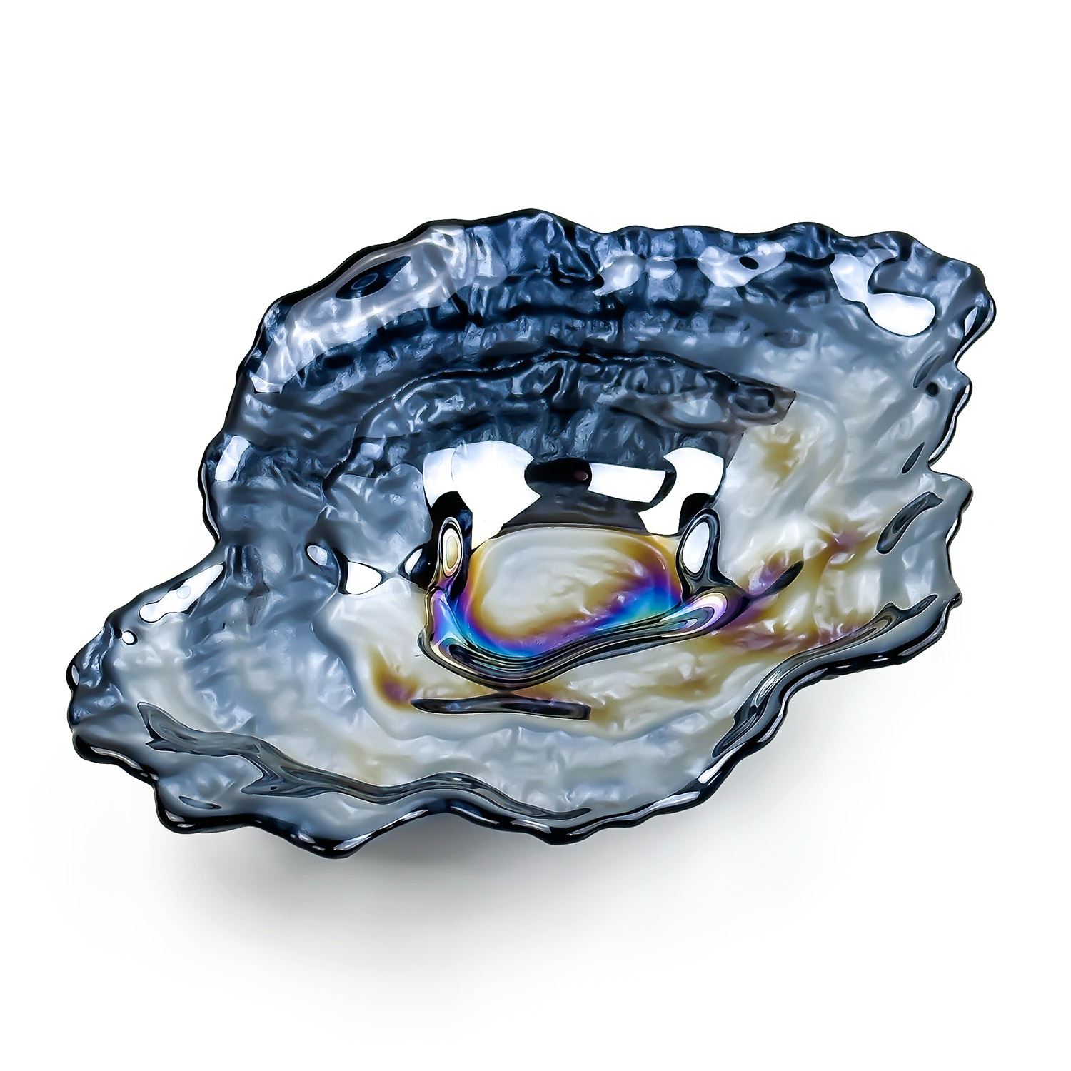 #8923 - UNMARKED GLASS SCULPTURED DISH OR TRAY. IT GIVES OFF A RAINBOW EFFECT AT DIFFERENT ANGLES - APPEARS TO BE A METALLIC TYPE OF BLUE/PURPLE COLOR. INTERESTING PIECE - UNKNOWN ARTIST. MEASURES: 11.5” (29 CM) LONG BY 8.5” (21.5 CM)WIDE AND SITS 2***ITEM(S) LOCATED IN LETHBRIDGE ALBERTA. FREE TRANSPORT TO EDMONTON OFFICE AVAILABLE FOR THIS AUCTION. WORLDWIDE SHIPPING IS AVAILABLE FOR ALL ITEMS