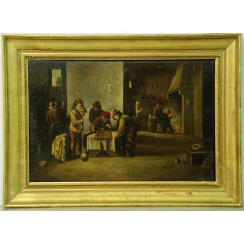 DESCRIPTION: INTERIOR SCENE. This scene was executed in an exquisite and intimate manner it is bright and well-arranged. The characters are seen eating, drinking and enjoying themselves and they are carefully dressed. The picture is carefully executed but there is a strange contrast between the painting of the figures, which are full of life, all the characters, in fact, are intent on doing something, even if the interior is poor the details of their clothes and their gestures are very striking and well defined. The colours used are the warm ones, applied with dense and wide brushstrokes that little by little delineate any corner of this painting.