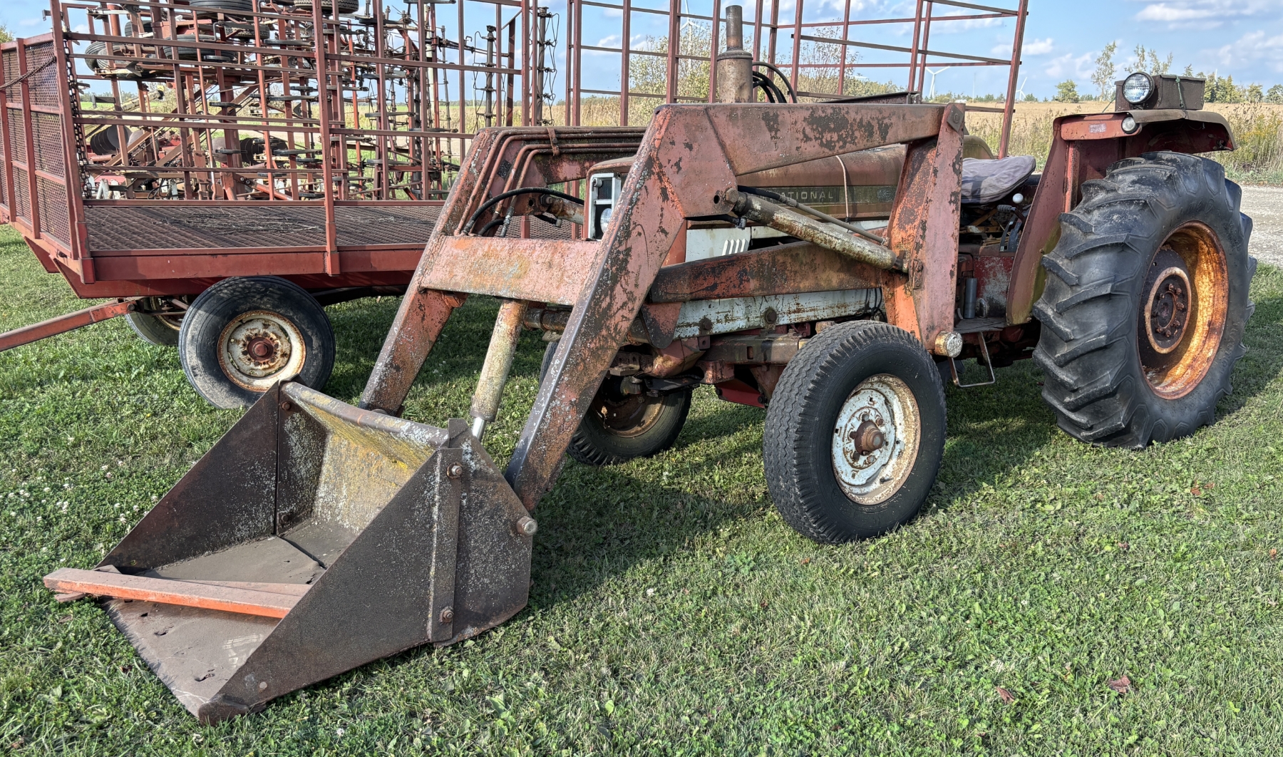NOTE: 4FT HYD BUCKET. 14.9-28 REARS. SHOWS 7452 HRS. RUNS AND DRIVES.