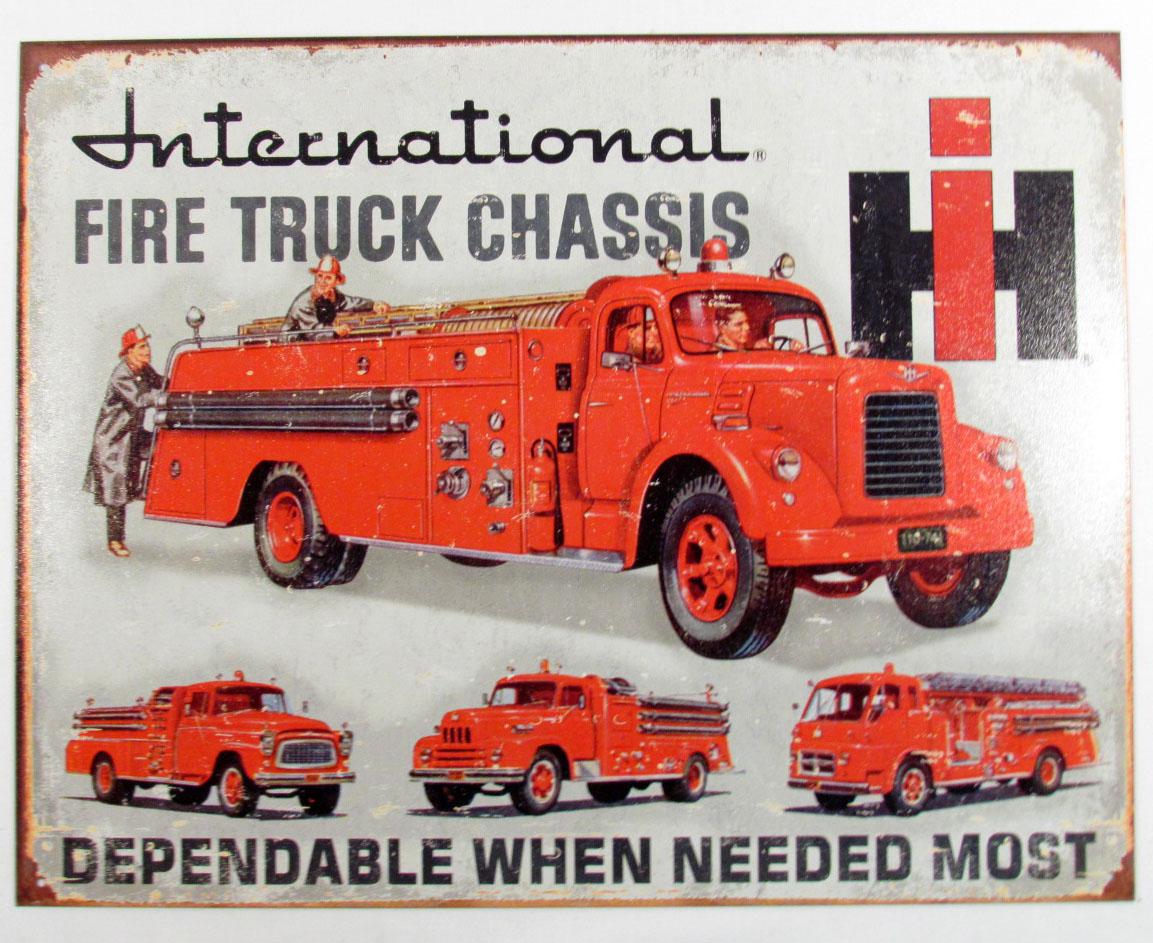 INTERNATIONAL HARVESTER FIRE TRUCK METAL SIGN - Approx. 12.5" x 16"