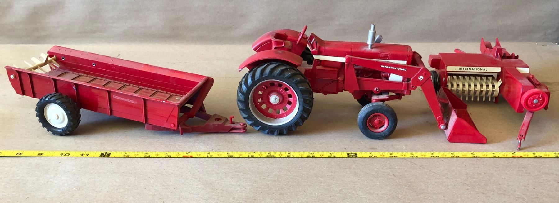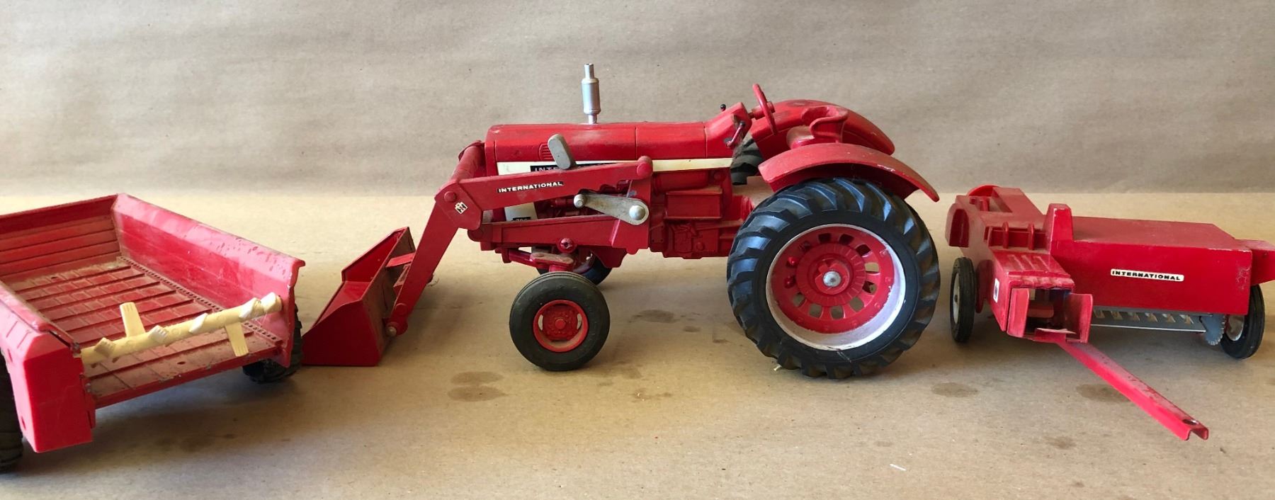 INTERNATIONAL TRACTOR W / LOADER, BALER & MANURE SPREADER