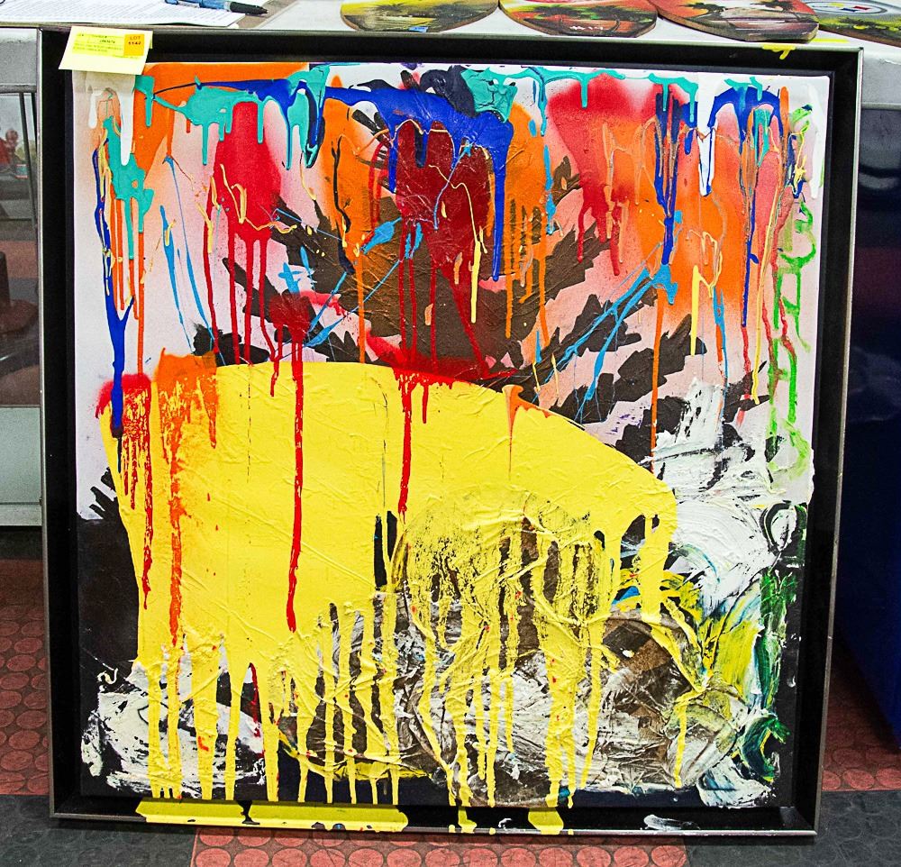 APPROX 29" X 30.5" ON LARGE CANVAS-SLIGHT DAMAGE TO ONE CORNER