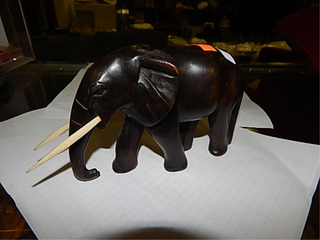 INTRICATE CARVED WOOD ELEHANT - DARK WOOD - IVORY TUSKS
