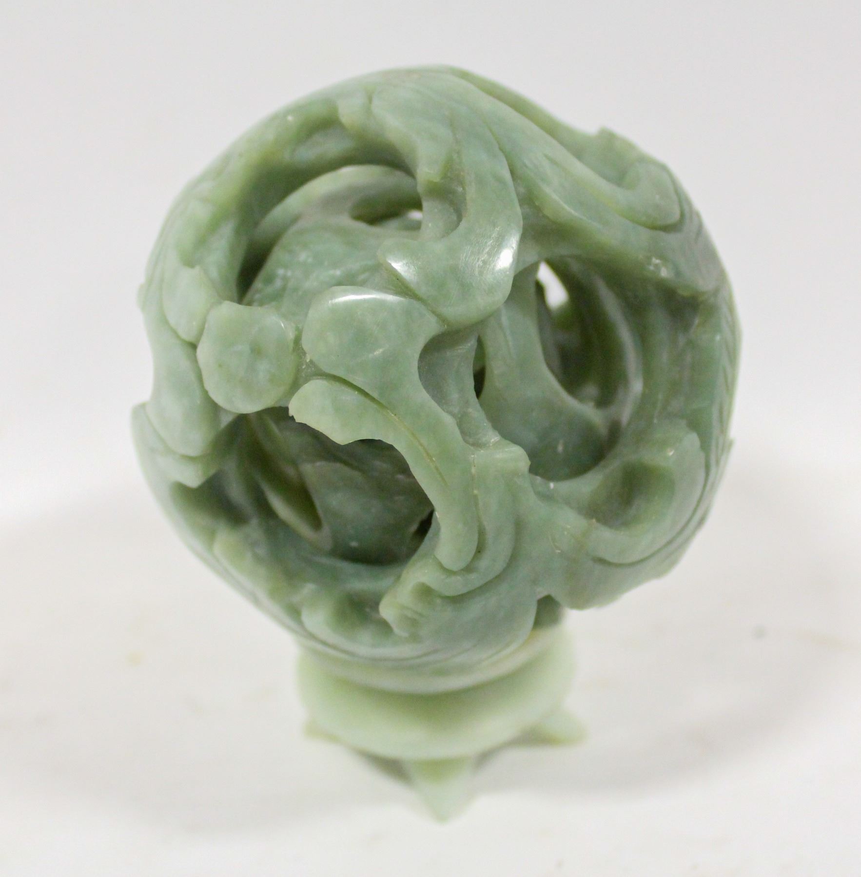 INTRICATE JADE CARVED PUZZLE BALL WITH STAND