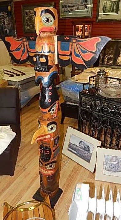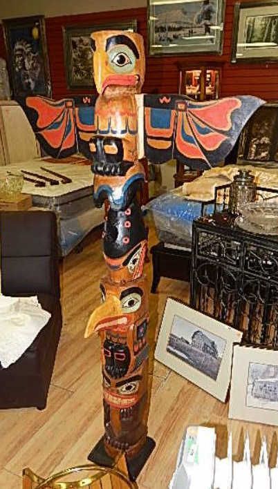 INTRICATELY HAND CARVED NATIVE TOTEM POLE - 5' - WITH WINGS