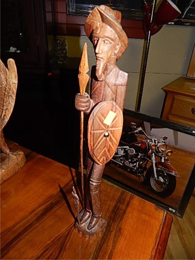 INTRICATELY WOOD HAND CARVED MAN WITH SPEAR