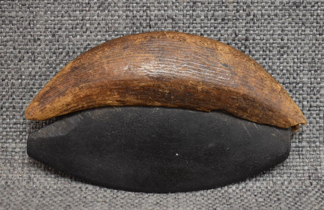 19th century hand made stone blade with wood handle 2.75" x 4.5"