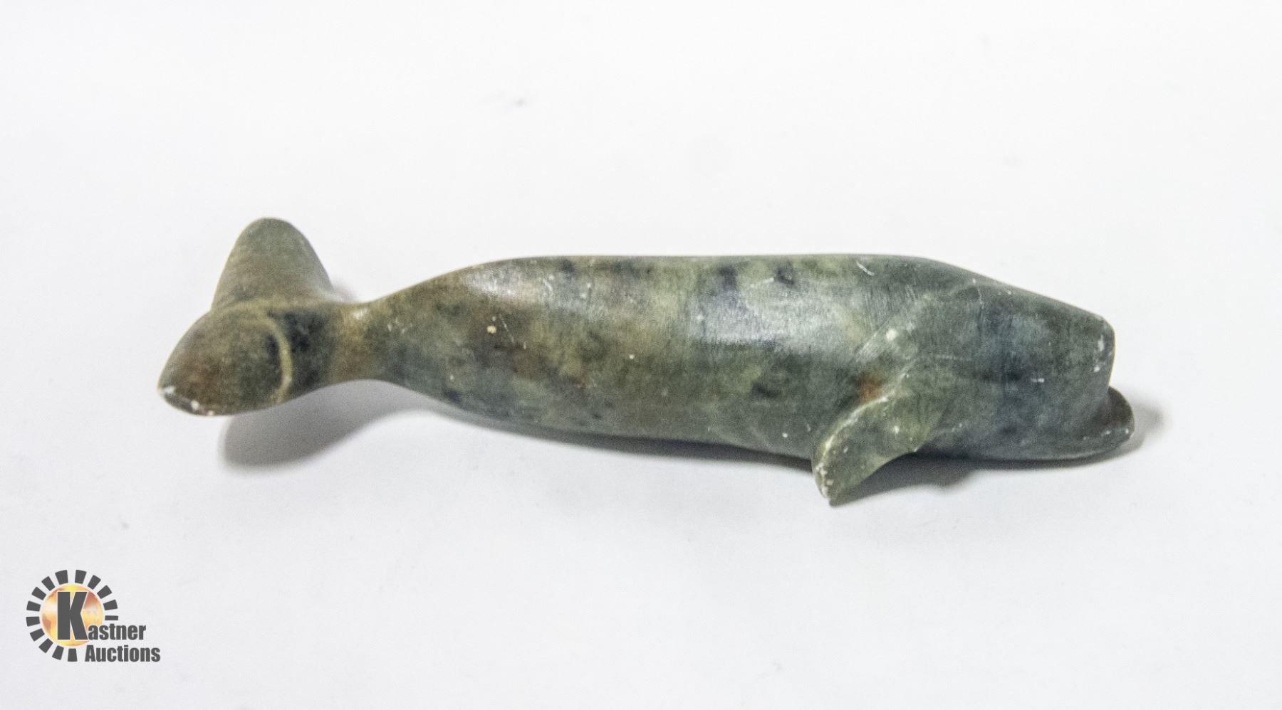 INUIT SOAPSTONE WHALE FIGURE, HANDCARVED