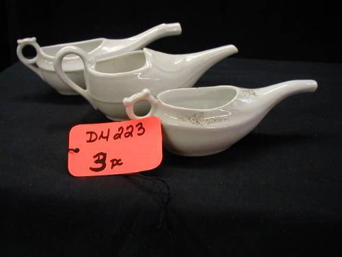 INVALID FEEDERS TURN OF THE CENTURY SEMI PORC. INCLUDES (1) MARKED W.T., (1) GERMAN, (1) W/ GOLD ACCENT (FLEA NIP ON RIM), 3PC EXCELLENT