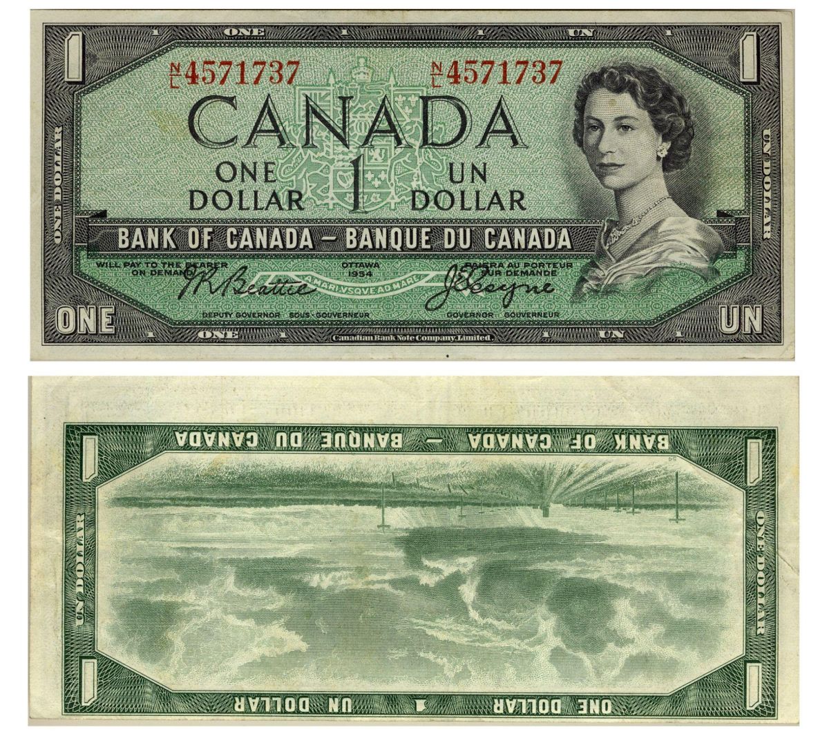 INVERTED DESIGN CH-E27-iii 1954 $1 BC-37a #NL4571737 ERROR NOTE. Excessivley Rare Inverted back issue. Note grades EF. First one seen and handled by TCNC.
