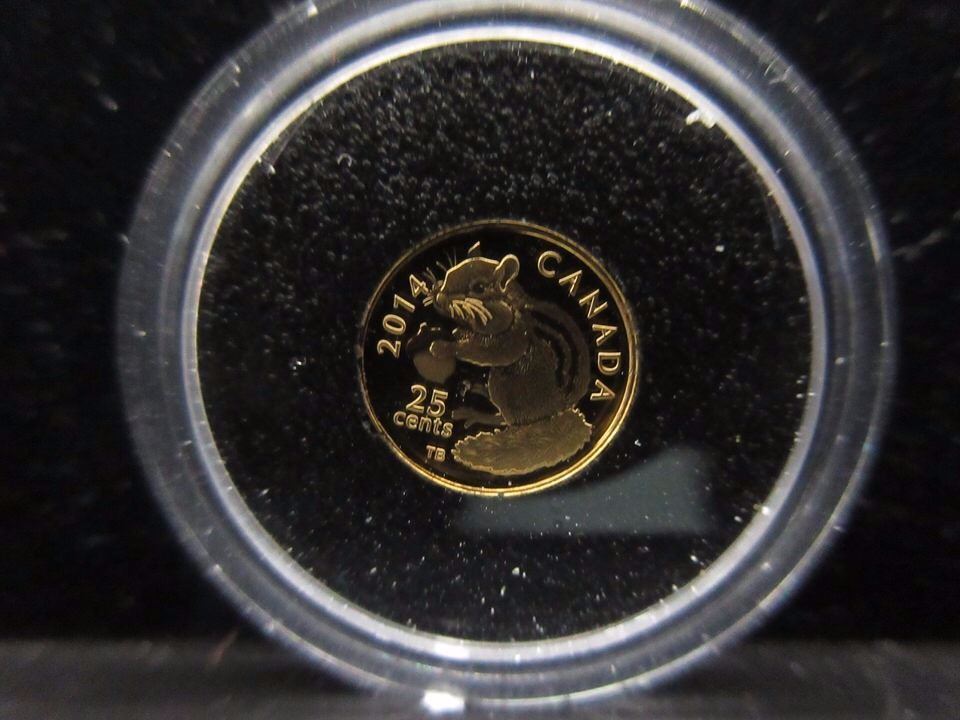 INVESTOR COIN - .999 GOLD CDA 2014 CHIPMUNK MOTIF - 1/2 GRAM - MINT IN CASE - WITH BOX & CERTIFICATE - 25CENT FACE VALUE - ROYAL CANADIAN MINT