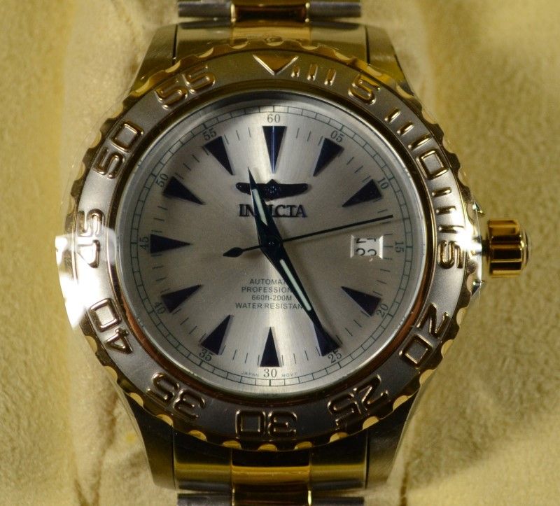 Stainless Steel & two tones silver watch. Automatic, 21 Jewels, Japan Movement, Water Resistant up to 660 ft/200m. Dial face 2 1/8" x 2" x 15mm. Est. $395-$425