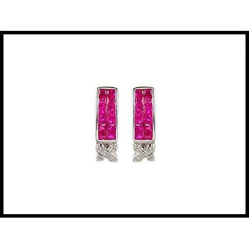 These 18K solid white gold ruby and diamond earrings are outstanding jewels. 24 rubies weighing 1.10 carats are set with the technique of invisible setting (no prongs). Only top gem setters can do this work. 12 diamonds create lovely color contrast. They measure 5mm (3/8") wide x 17mm (5/8") long. One can expect to pay almost $1,000 or more at local jewelers. Own them for just a fraction of that price.