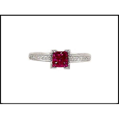 18K solid white gold has been beautifully crafted to create this stunning ruby and diamond ring. Nine collection color natural rubies are set with the invisible technique (no prongs). Only world-class gem setters are able to do such work. The addition of 16 sparkling diamonds are perfect color contrast.
