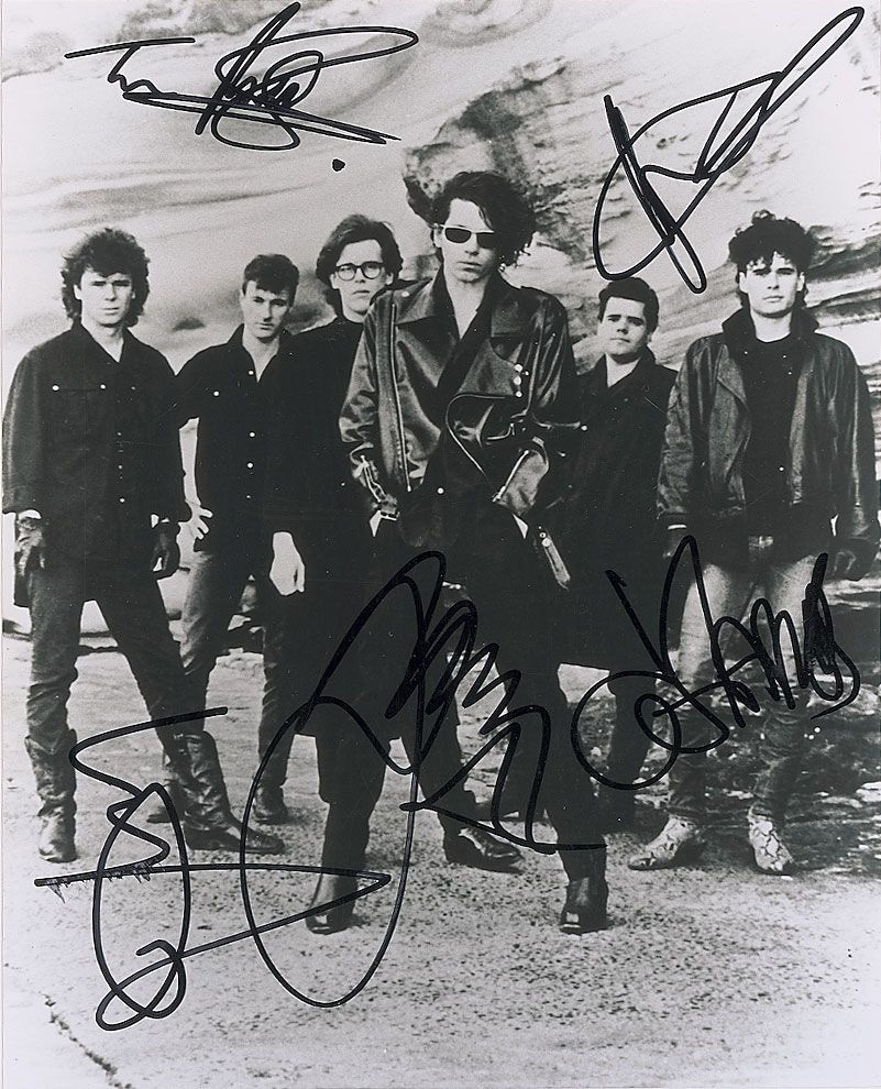 Glossy 8 x 10 group photo, signed in black felt tip by five original members Garry Gary Beers, Andrew Farris, Jon Farriss, Tim Farriss, and Kirk Pengilly. In fine condition.