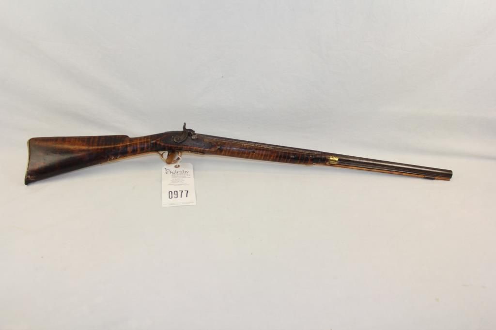 27" Barrel Fowling Piece. 12 Gauge. Marked IP Moore on Lock. Half Stock Tiger Maple. Broken at Wrist.