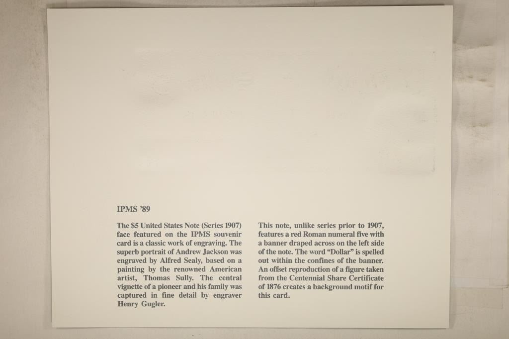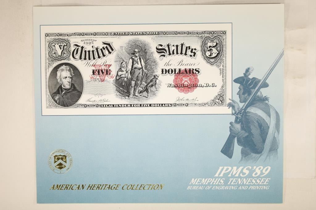 FEATURING THE FACE OF SERIES 1907 $5 US NOTE, PRINTED BY THE BUREAU OF ENGRAVING AND PRINTING