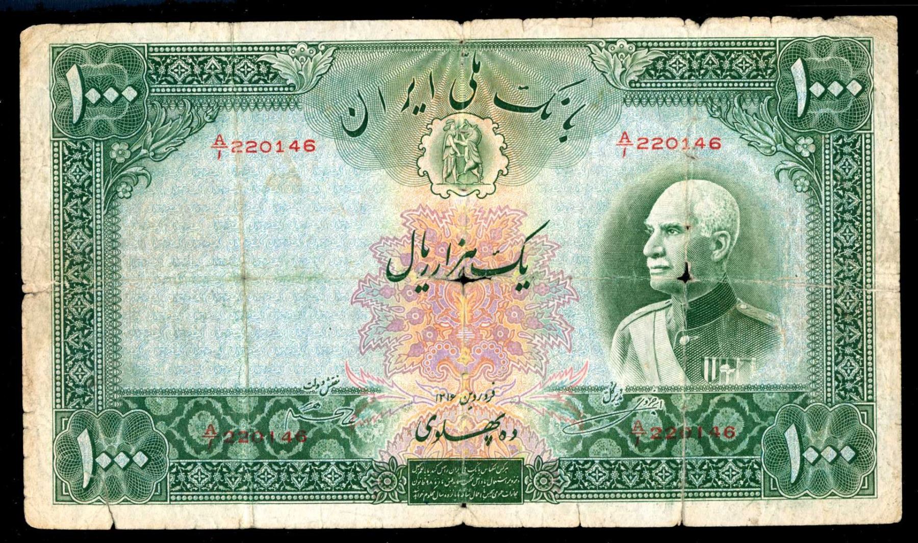 IRAN - Bank Melli 1000 Rials ND 1937 - PMG F-15