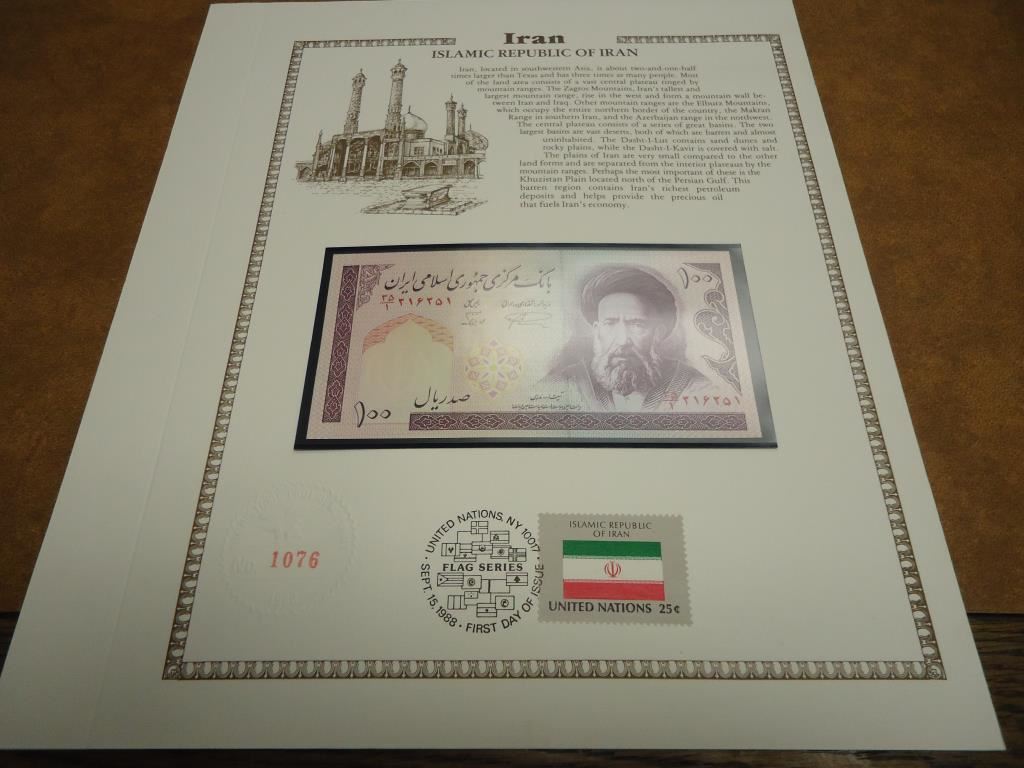 IRAN CRISP UNC CURRENCY & STAMP SET AS SHOWN