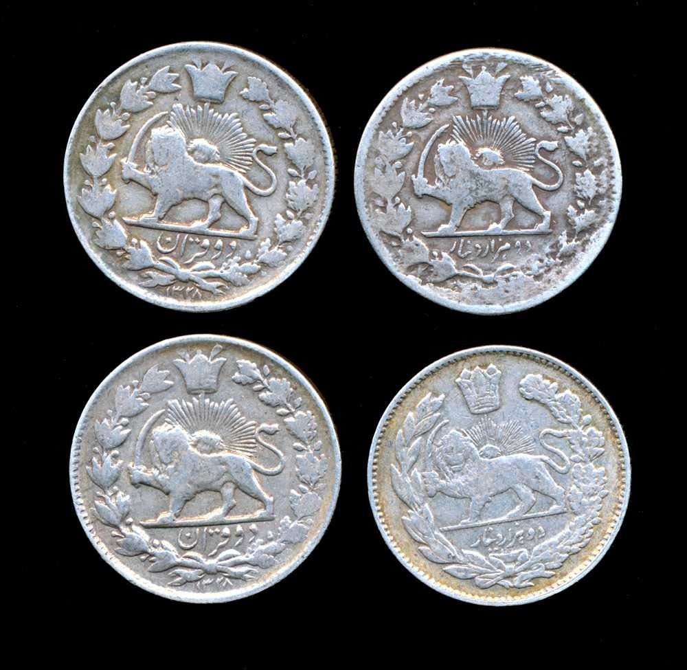 IRAN - Lot de 4 x 2000 dinars 1907-1913 AH1328-1332 VG-VF