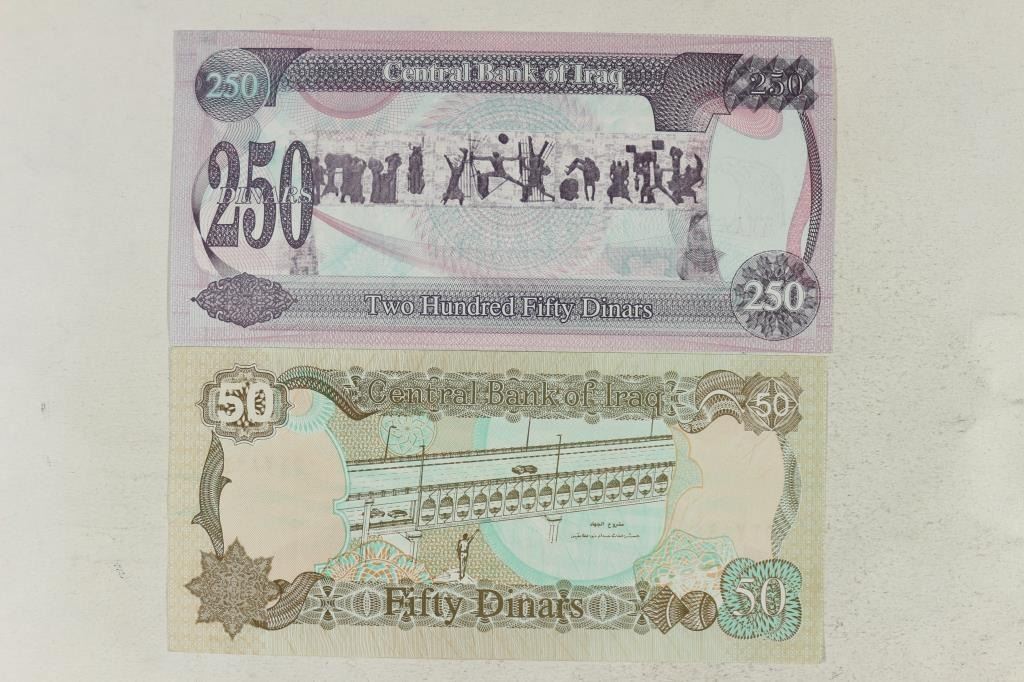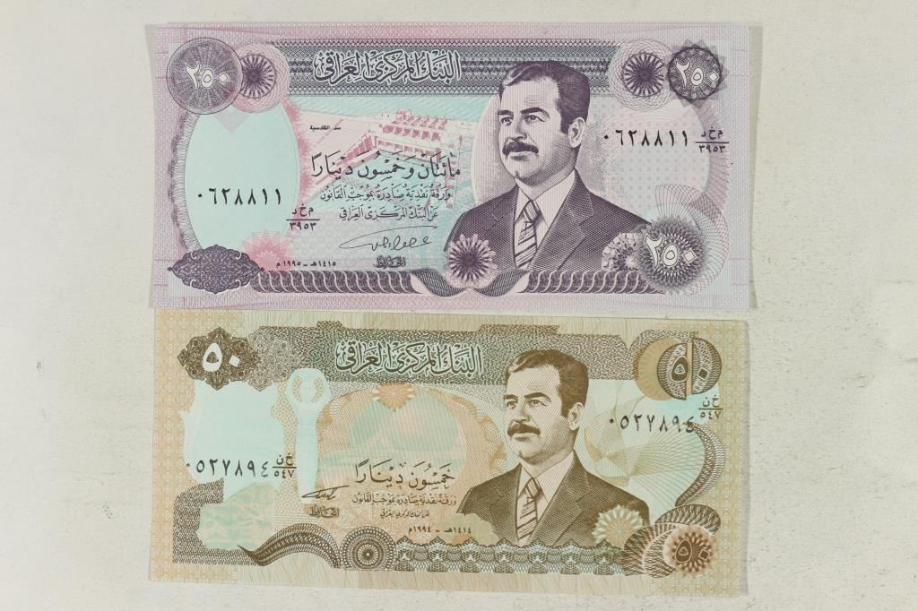 IRAQ 1994 50 DINARS AND 1995-250 DINARS CRISP UNCS