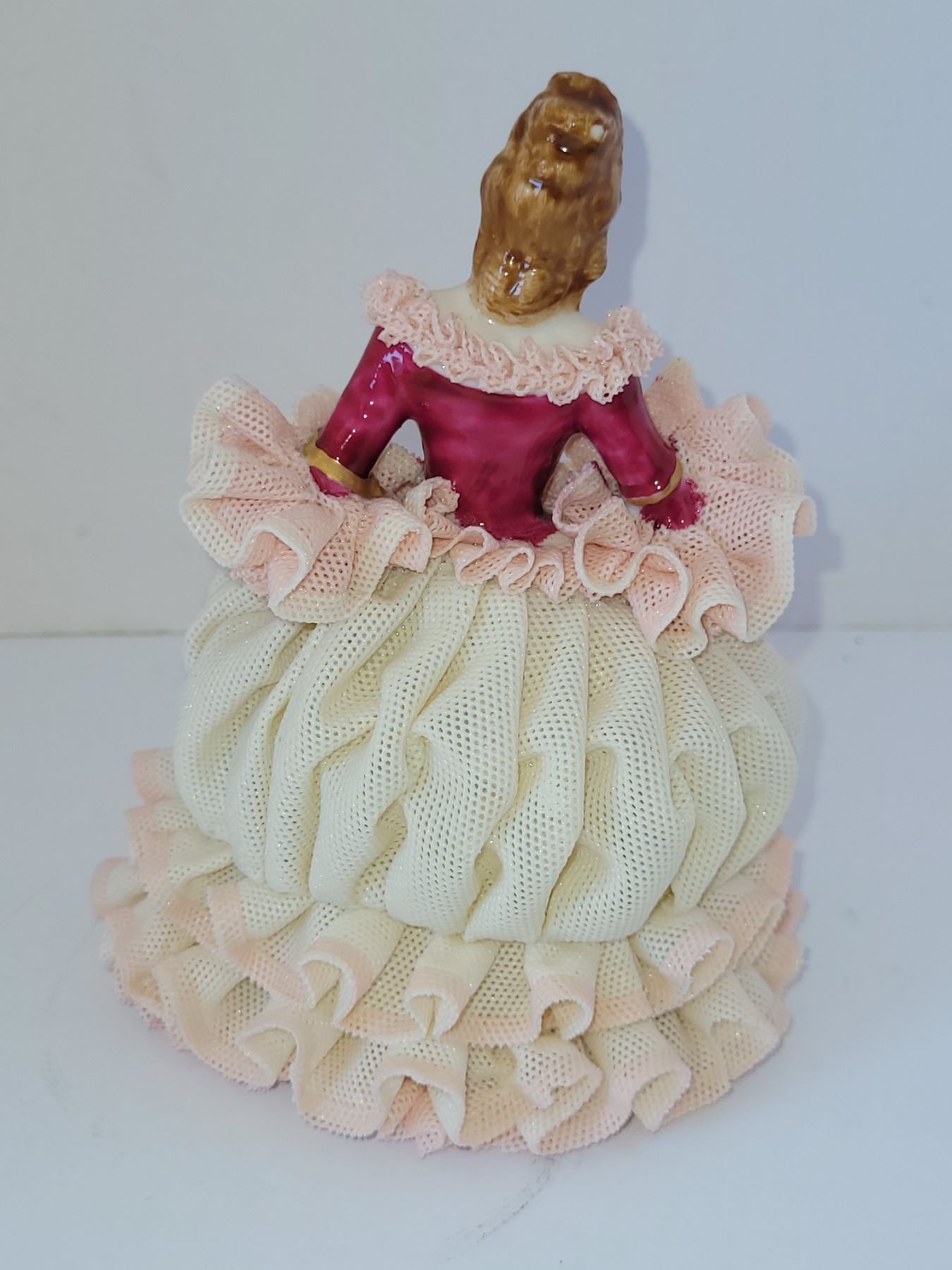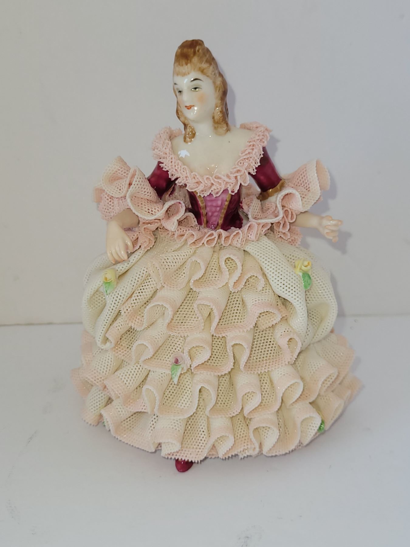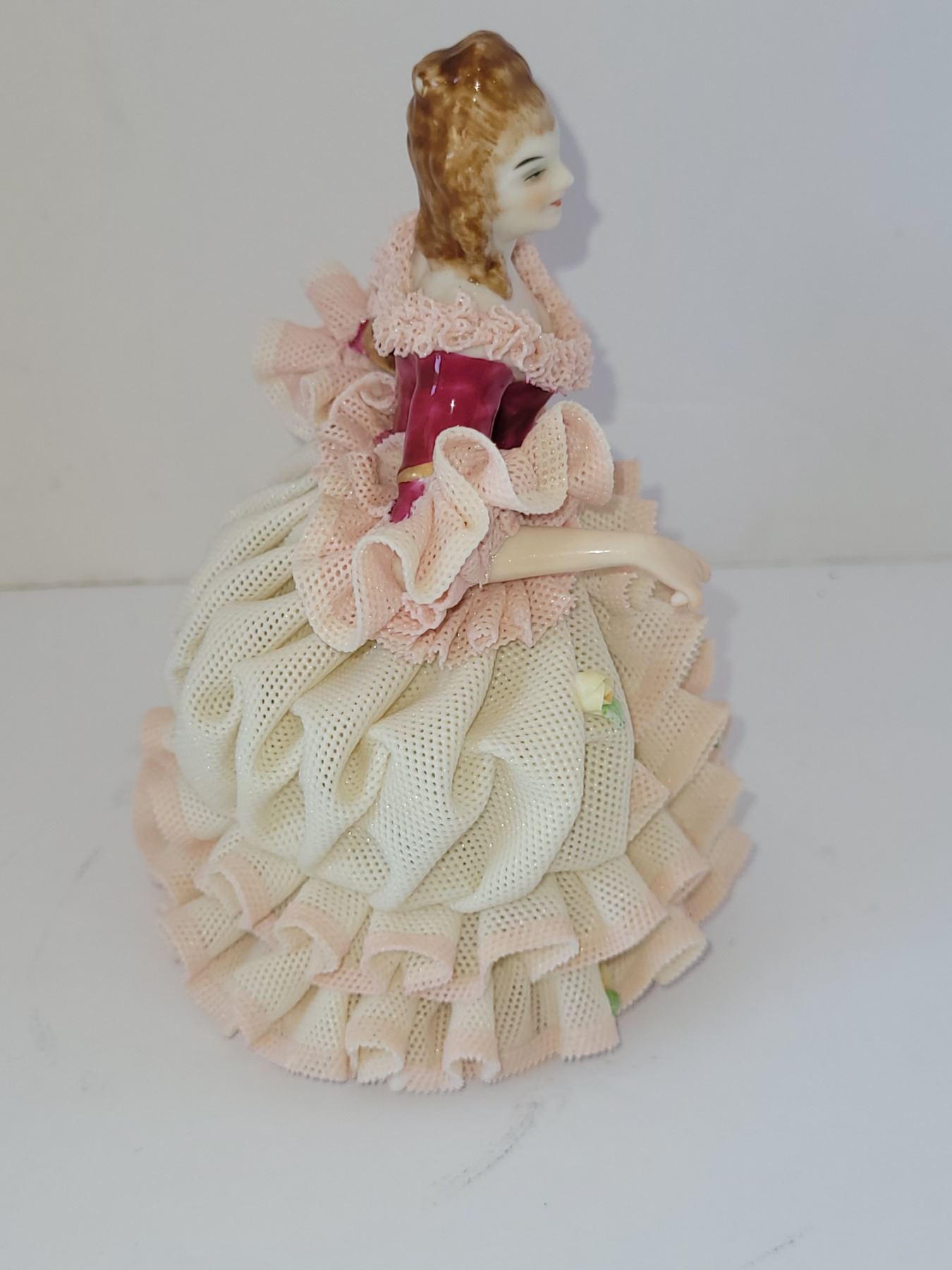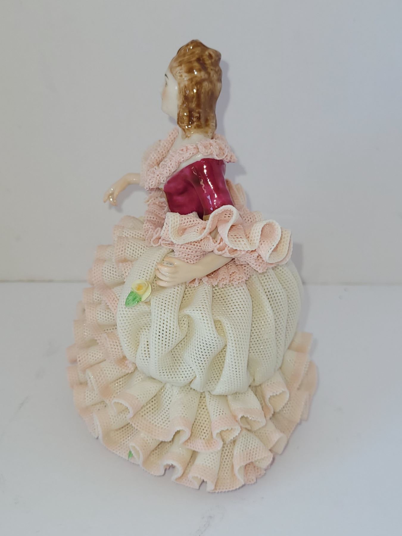 IRELAND DRESDEN WHITE AND PINK LADY STATUE 4.5" X 5.5". SEE PICTURES