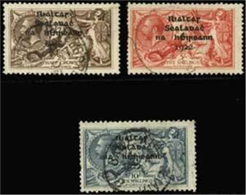 1922 Thom, bolder opt in shiny blue-black, 2s to 10s (SG 44-46) all with serious perf faults and 5s also torn but of superficially good used appearance, good 'spacefillers' of this scarce issue, cat £1500