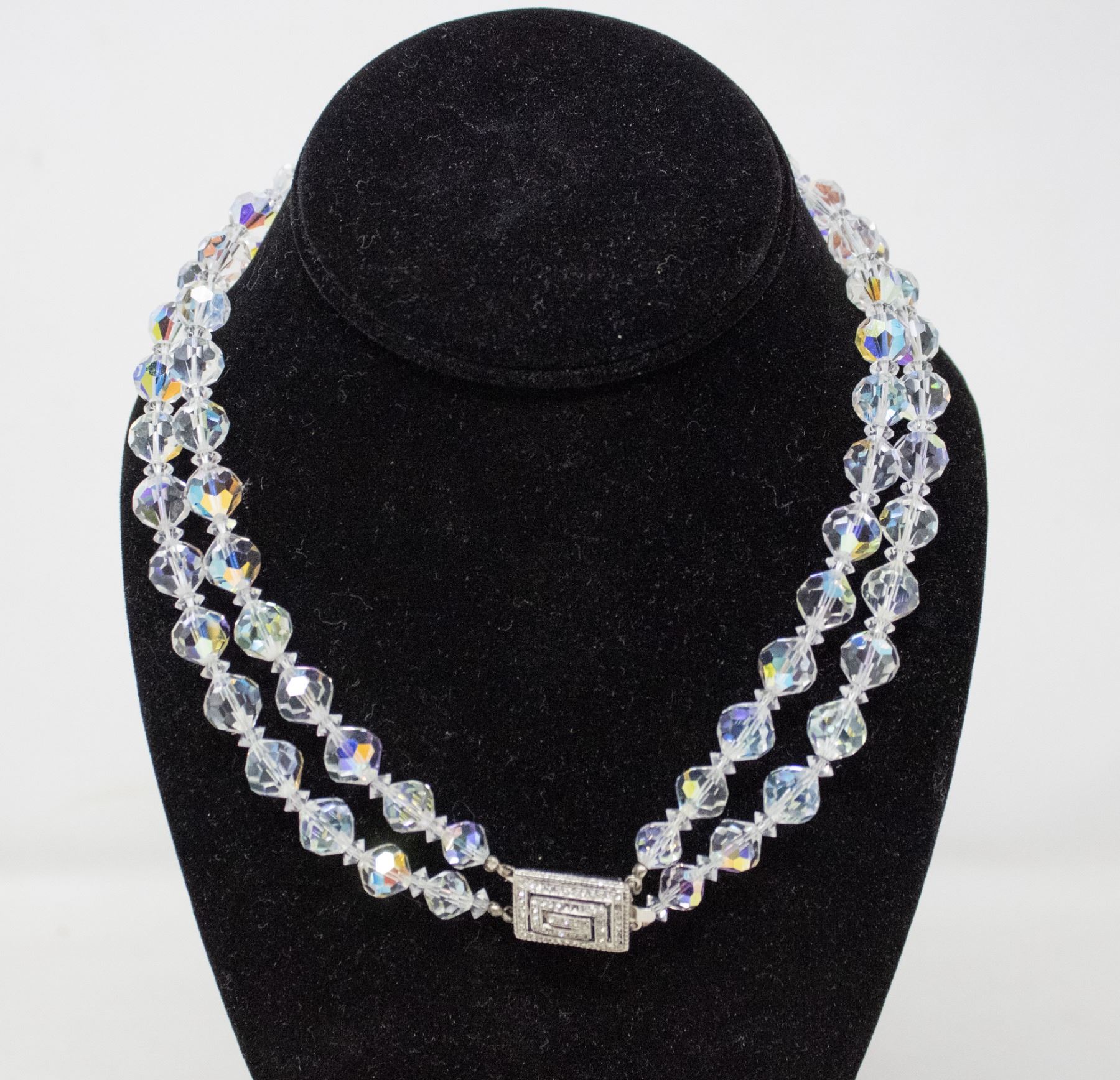 IRIDESCENT CRYSTAL NECKLACE W FANCY CLASP