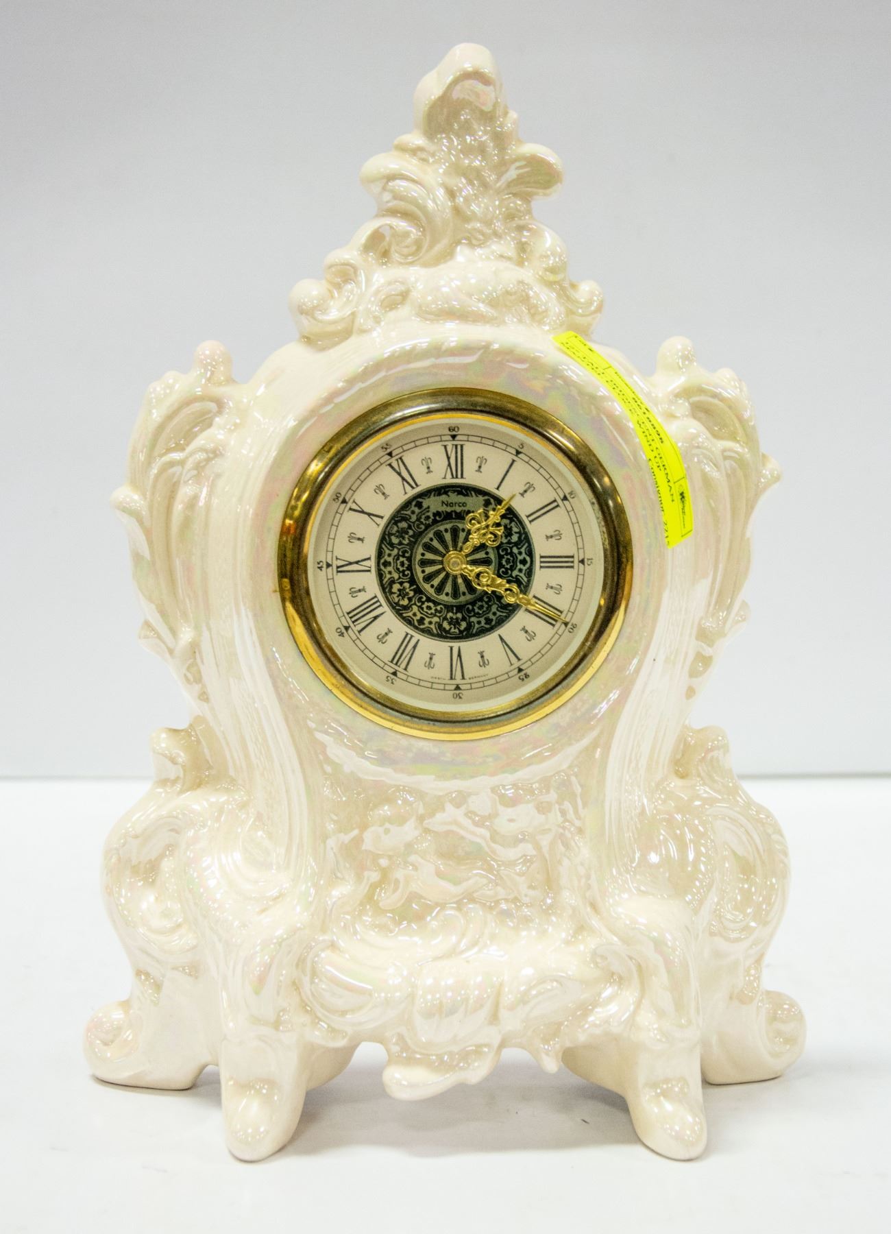IRIDESCENT GERMAN MANTEL CLOCK WIND UP 12" TALL