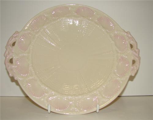 IRISH BELLEEK SHELL DECORATED CAKE PLATE. Marked on bottom with green Belleek mark. 10.5” L