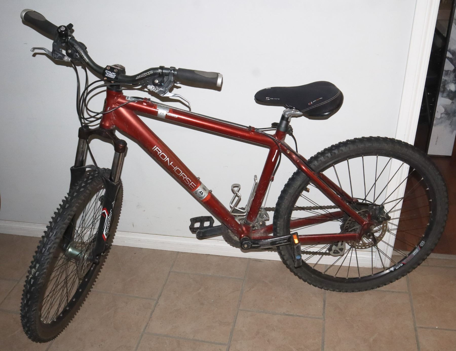 BICYCLE. FRONT SHOCKS. MARKED SIZE 17". LOOKS TO BE 24 SPEED. OVERALL VERY GOOD CONDITION.